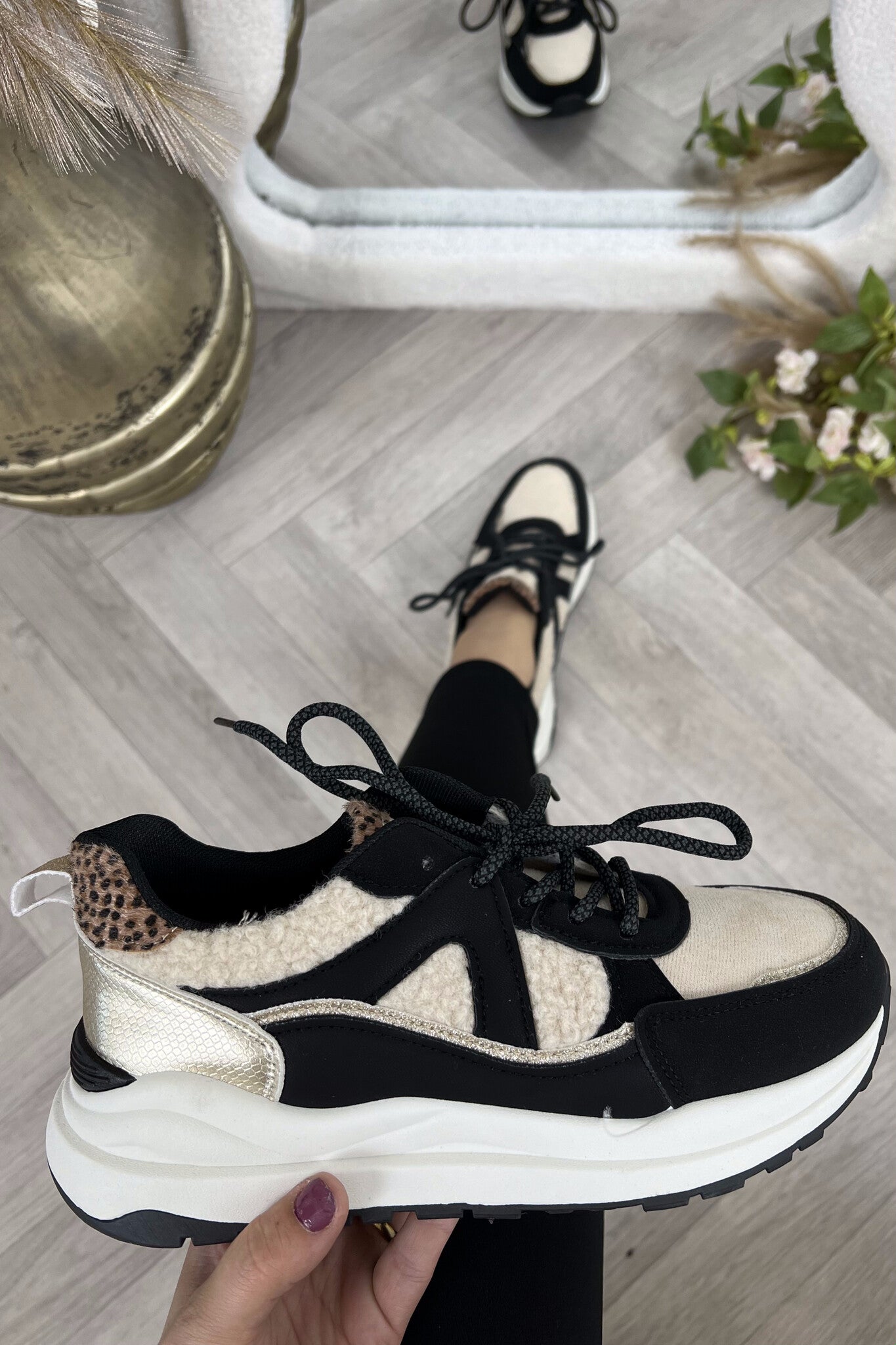 Comfy Leopard Sneaker - Black/Beige/Gold