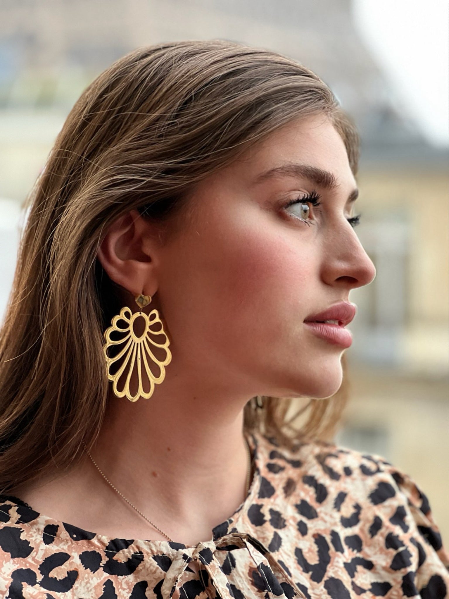 Maak elke outfit compleet met deze leuke oorbellen! Straal met onze Shell Earrings! Shop ze in Gold.