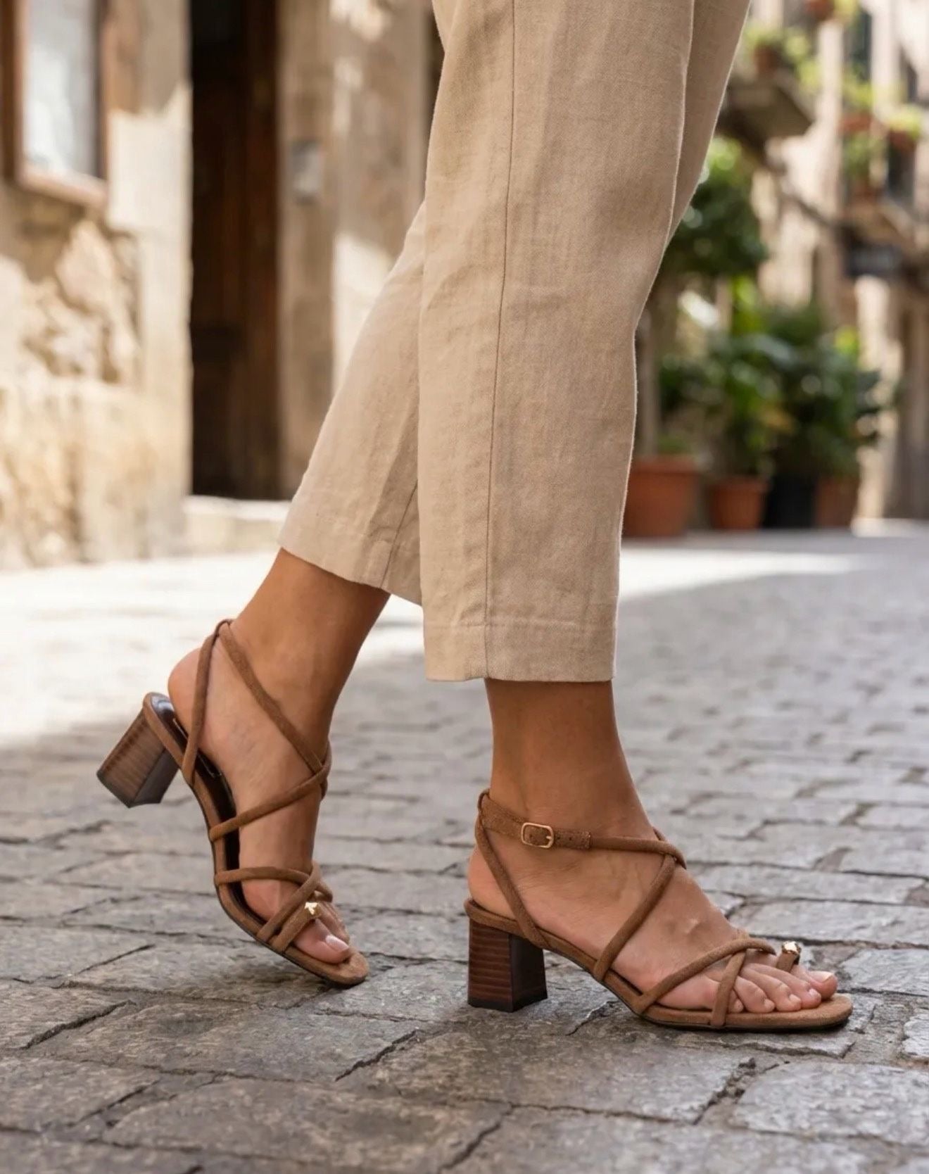 Deze sandaal met hogere hak maakt jouw dag in de zon very classy! Shop hem in camel!