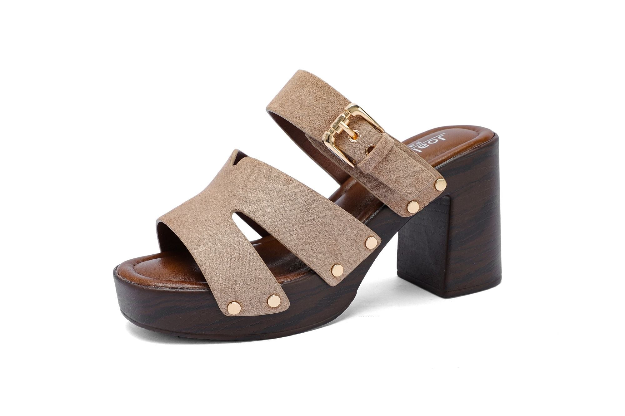 Een hogere plateauhak en mooie sluiting! Ideaal onder elk jurkje of jeans! Shop ze nu in sand!