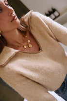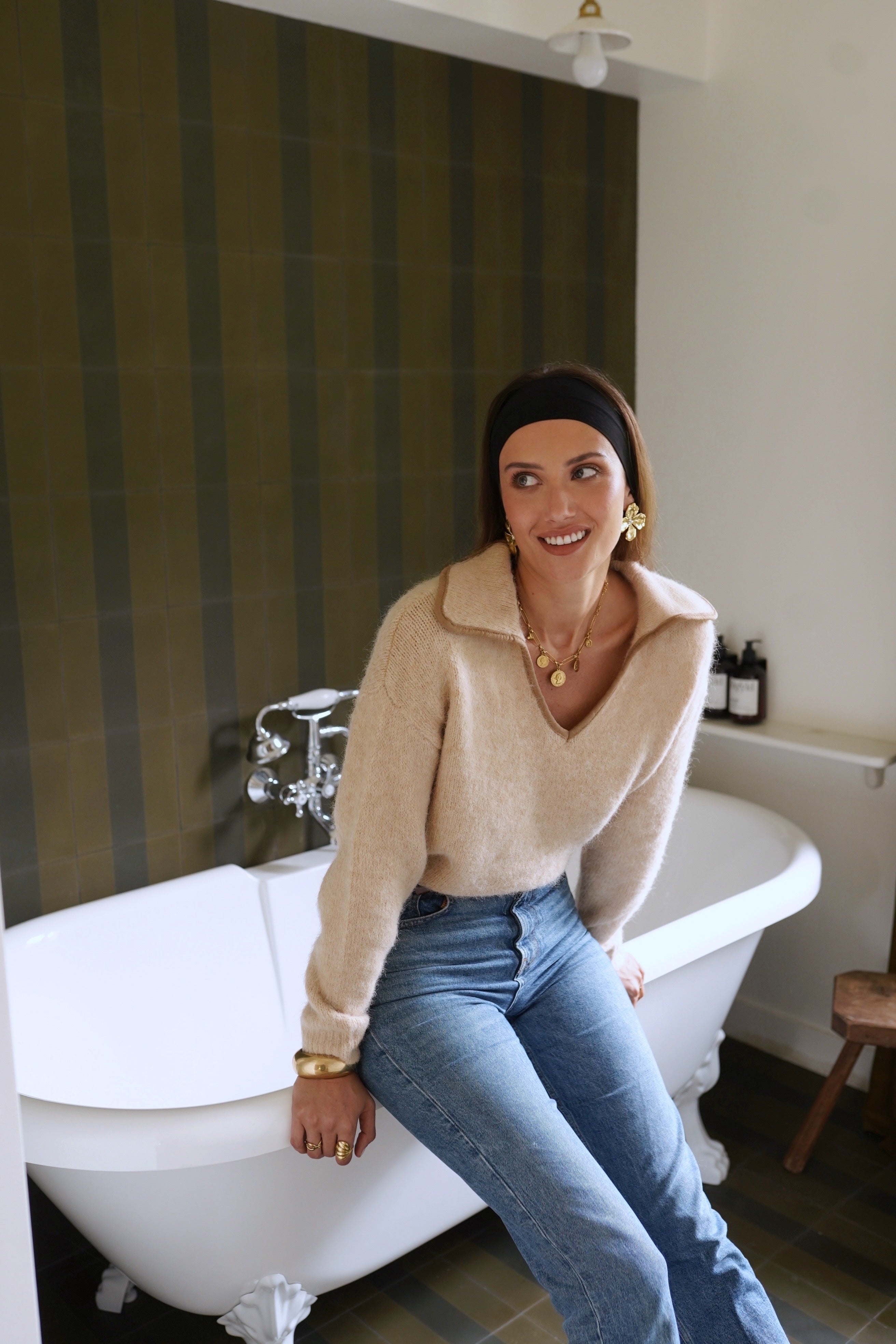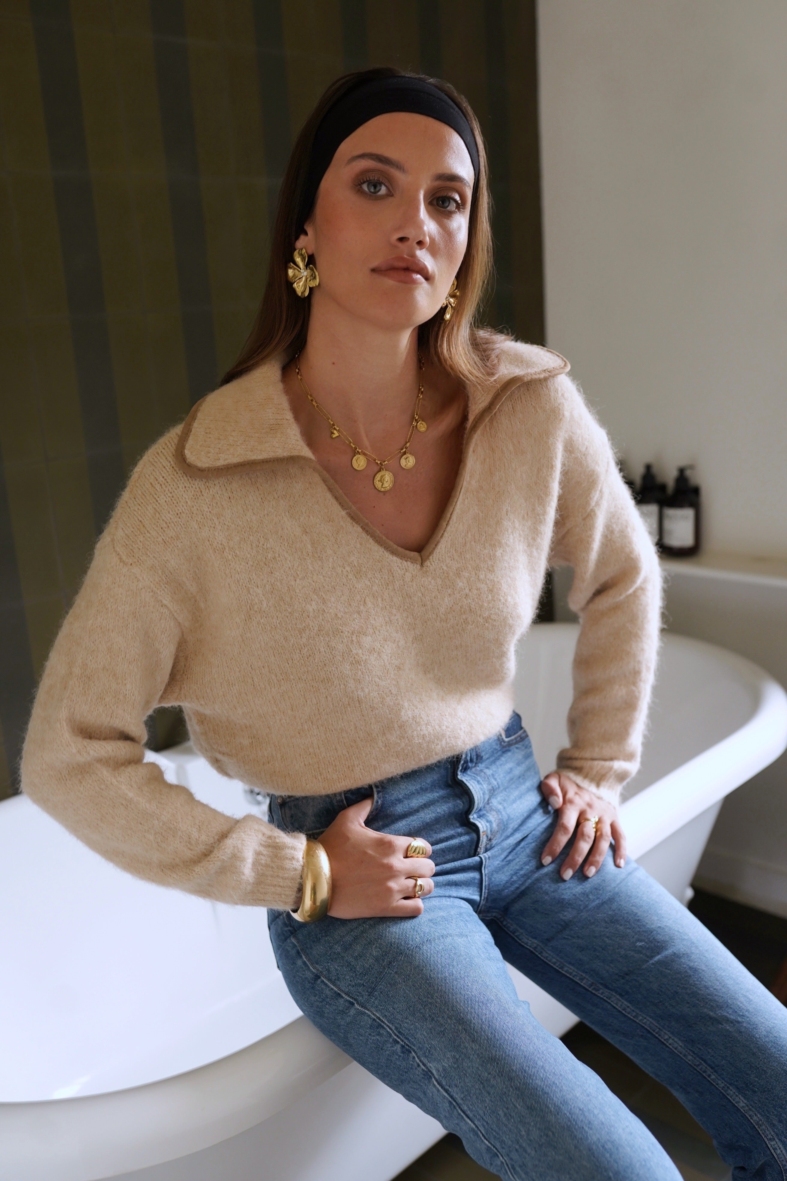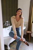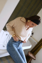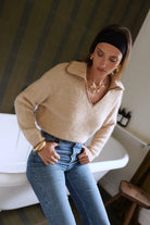 Deze prachtige sweater met mooie v hals is zo leuk! Shop hem nu in creme!