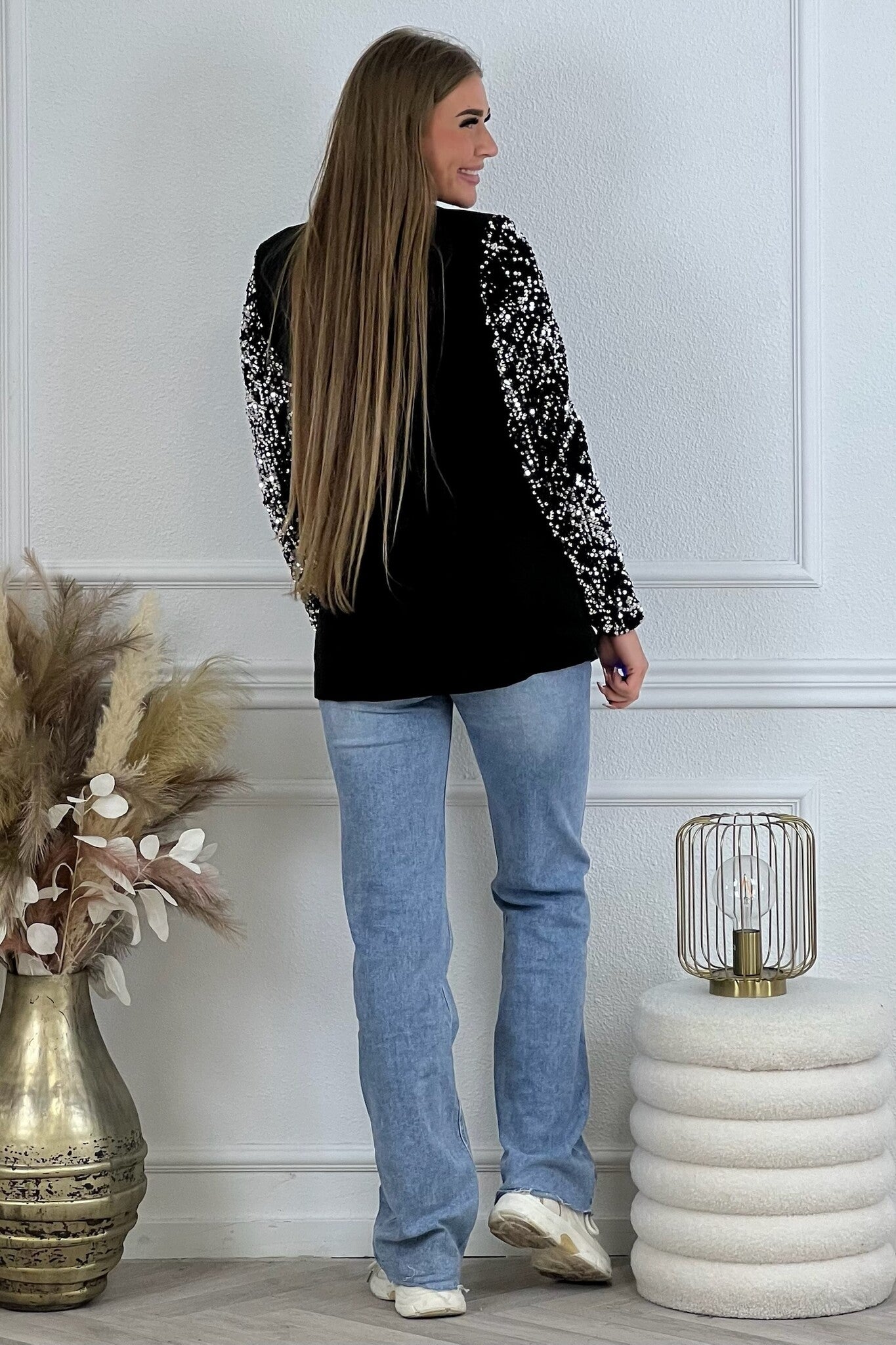 De classy glitter sleeve blazers hebben gedetailleerde mouwen met een prachtige glitter patroon. De blazer heeft imitatie zakken aan de voorkant en een mooie fit. Shop hem in Silver!