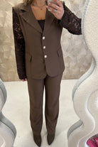 Een prachtig pak van ons eigen label! Het pak heeft prachtige kanten mouwen, zakken in het jasje en natuurlijk classy knopen. De broek sluit ook mooi aan. Shop the classy lace suit nu snel in bown!
