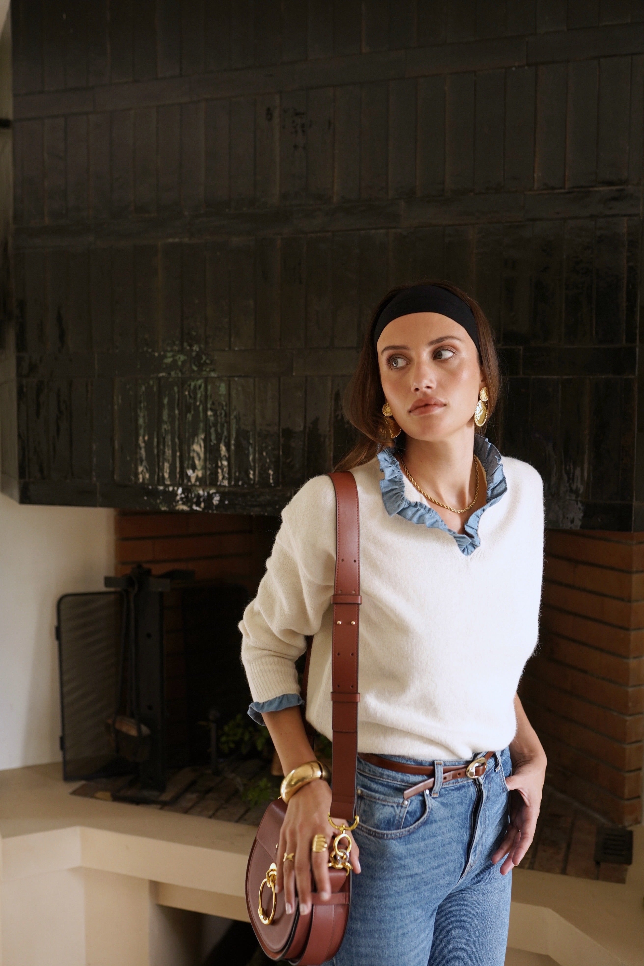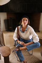 Deze fijne sweater heeft leuke blauwe details in de kraag en de mouwen. Shop hem in white/blue!