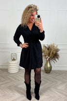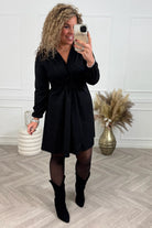 Colored Short Knotted Dress - Black