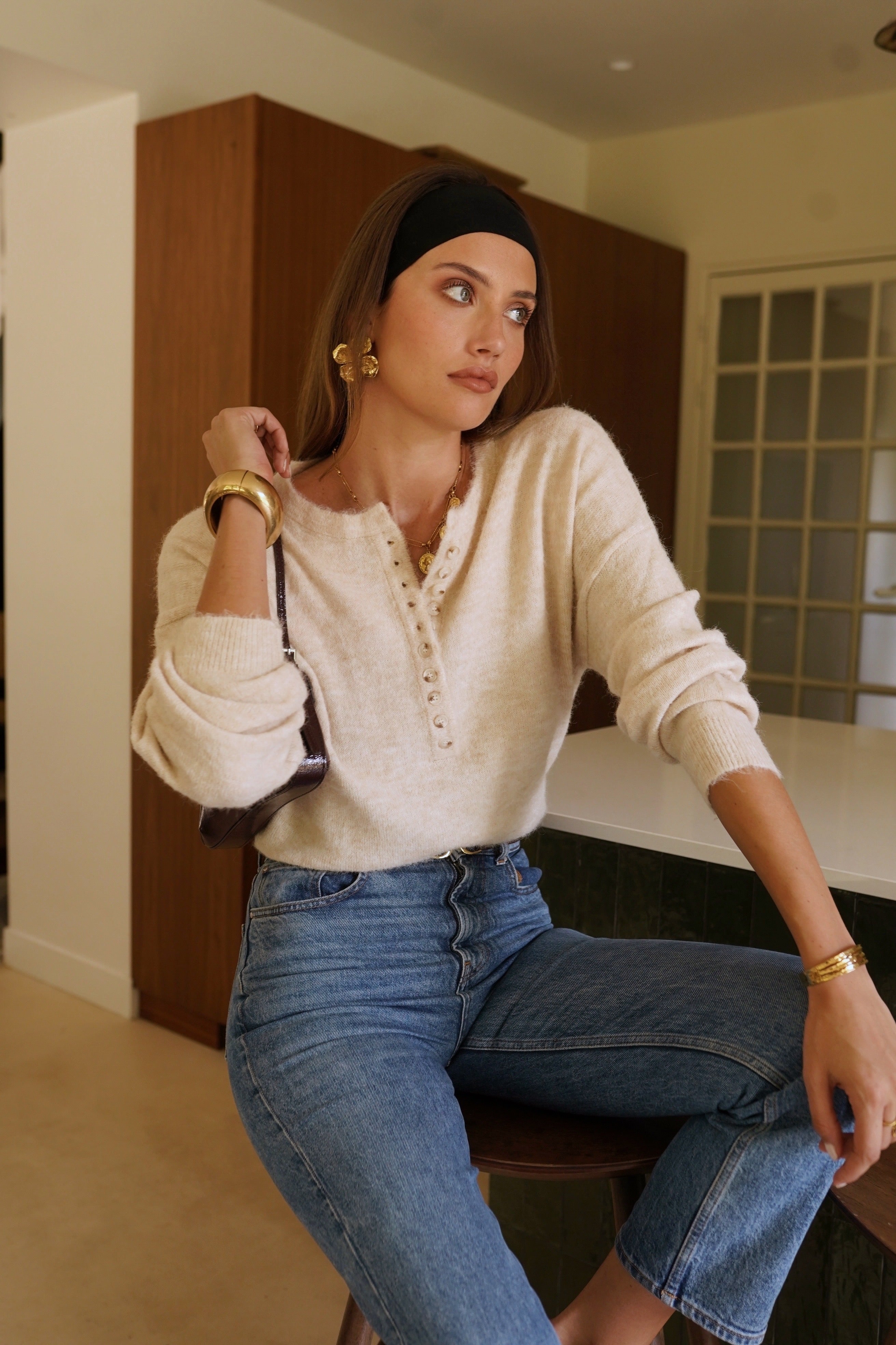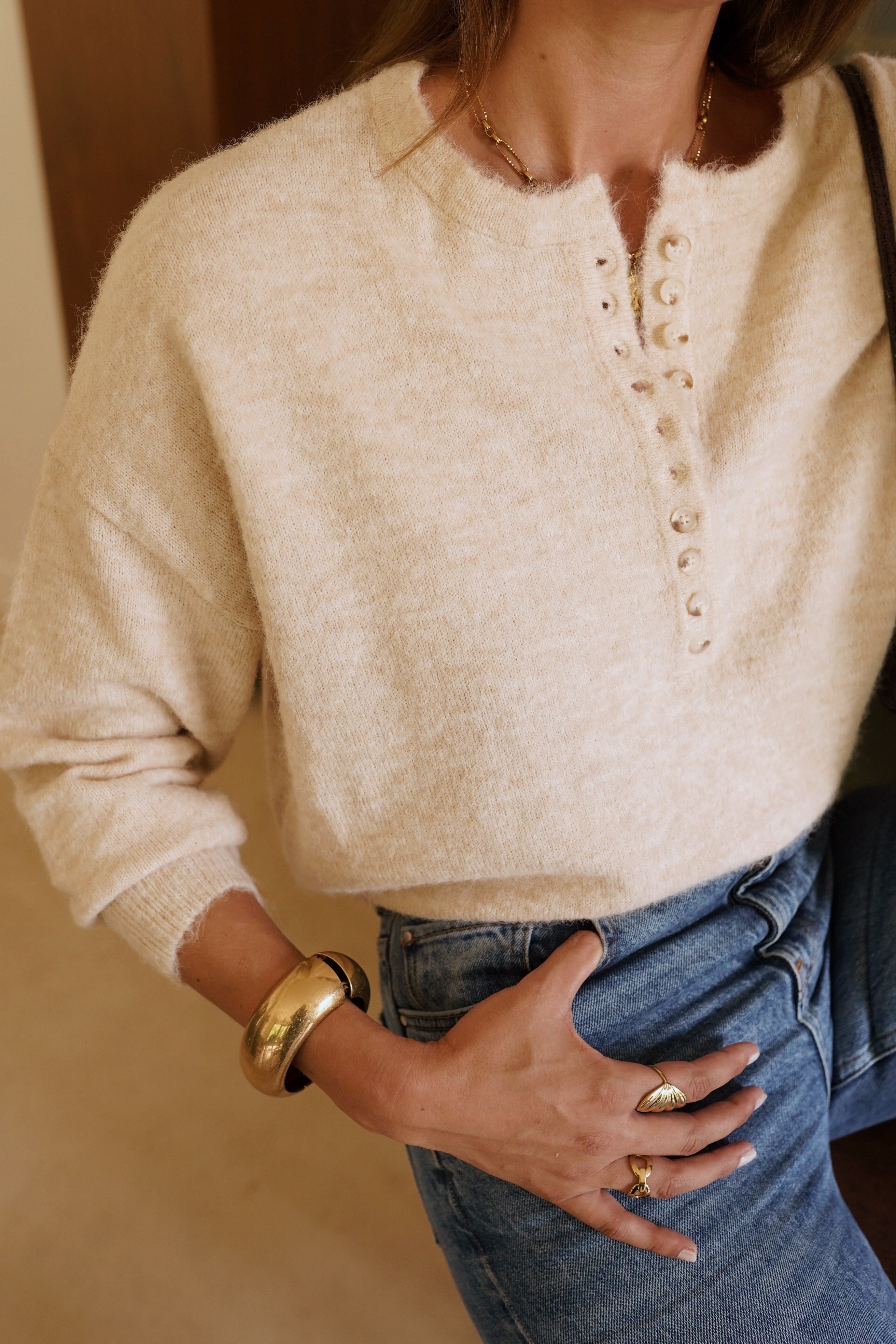 Deze mooie sweater met knoopjes is de perfecte basic! Shop hem nu in beige!
