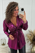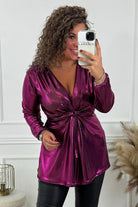 Curvy Knotted Shiny Top - Magenta