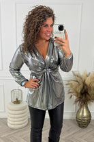Curvy Knotted Shiny Top - Silver