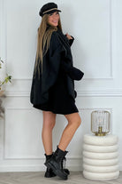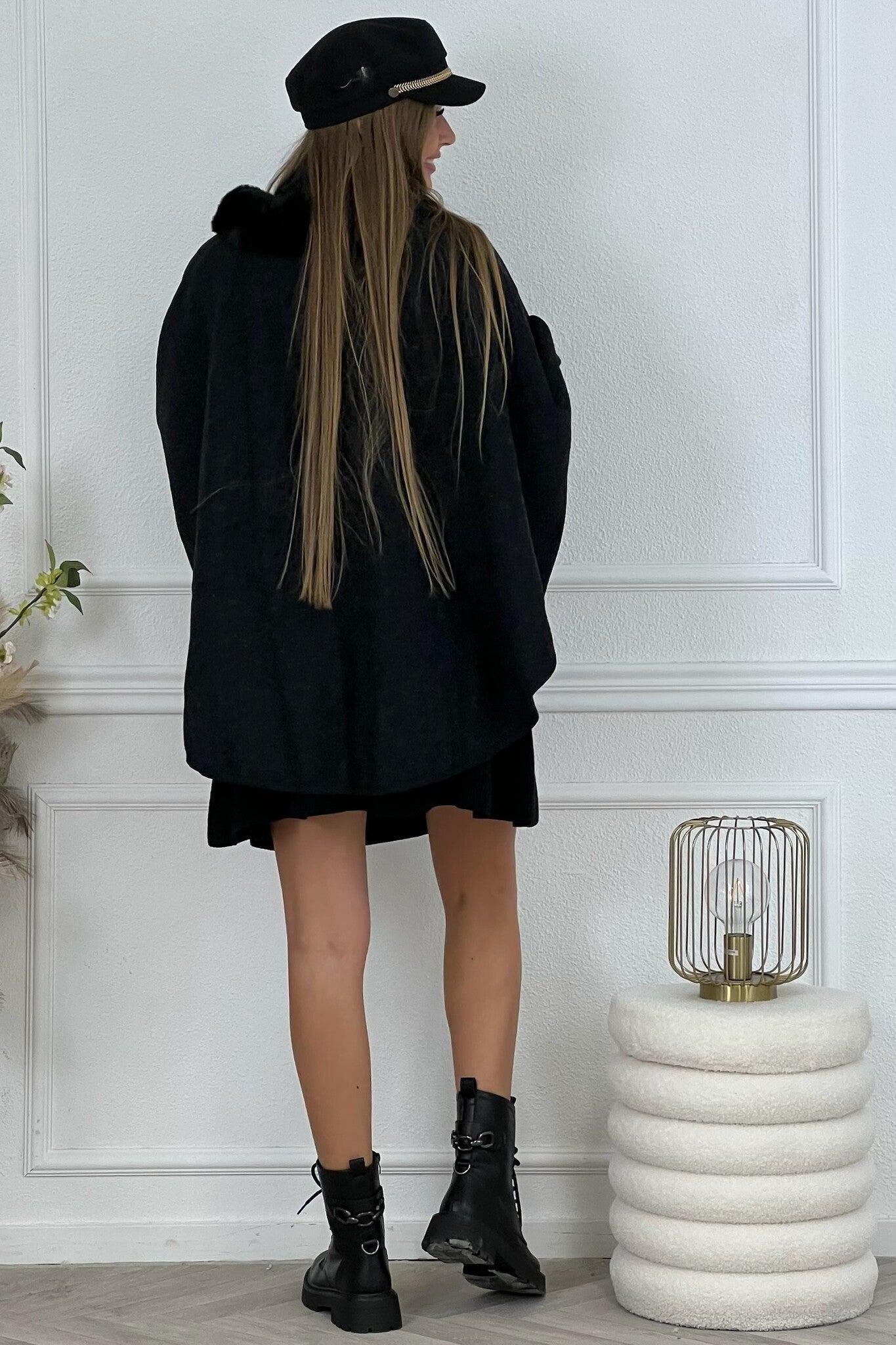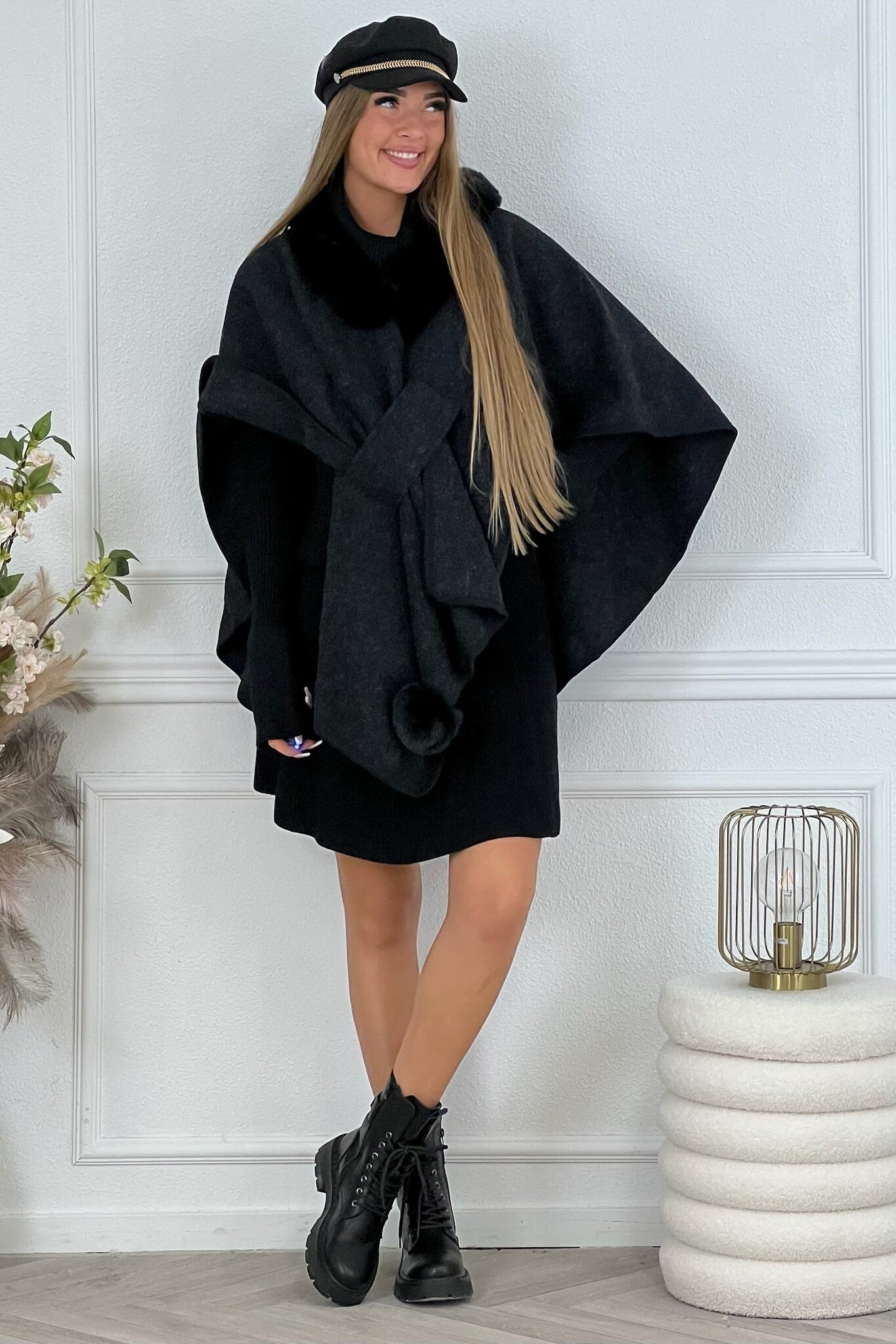 Deze poncho sla je heerlijk om je heen en zorgt ervoor dat jij nog heerlijk op een terras kan zitten in het najaar! Met een heerlijke zachte kraag! Shop hem in black!