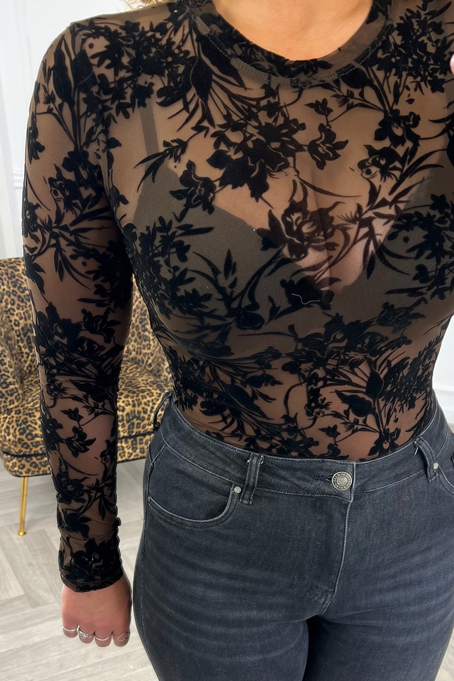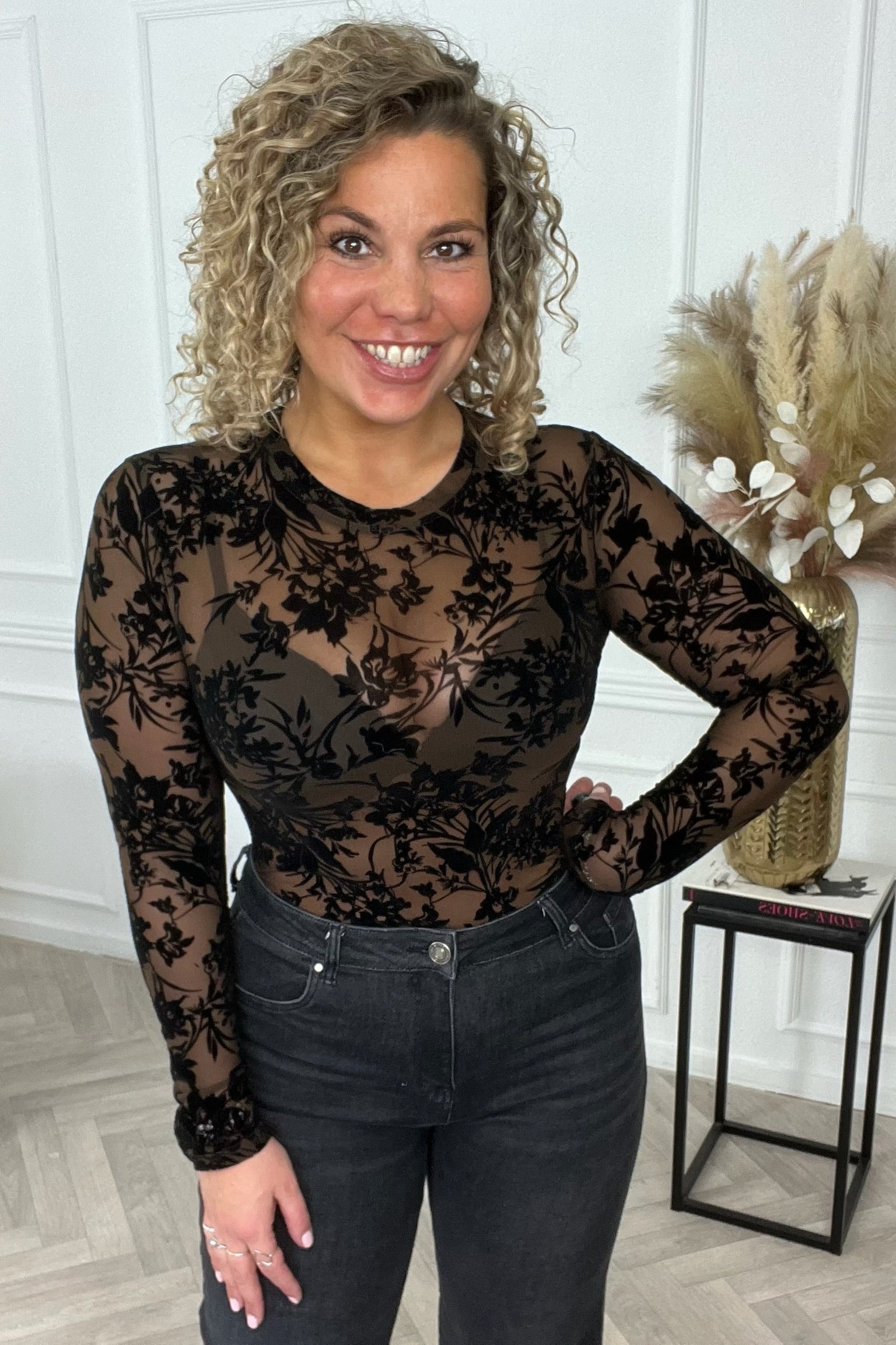 Een enige doorschijnende body, met te gekke bloemen erop! Deze body valt wat langer en kan zeker tot een maat 42 gedragen worden! Shop de flower mesh body nu in brown.