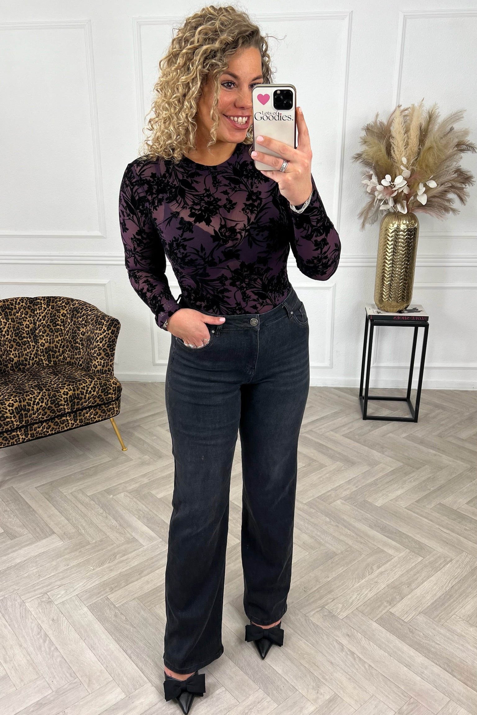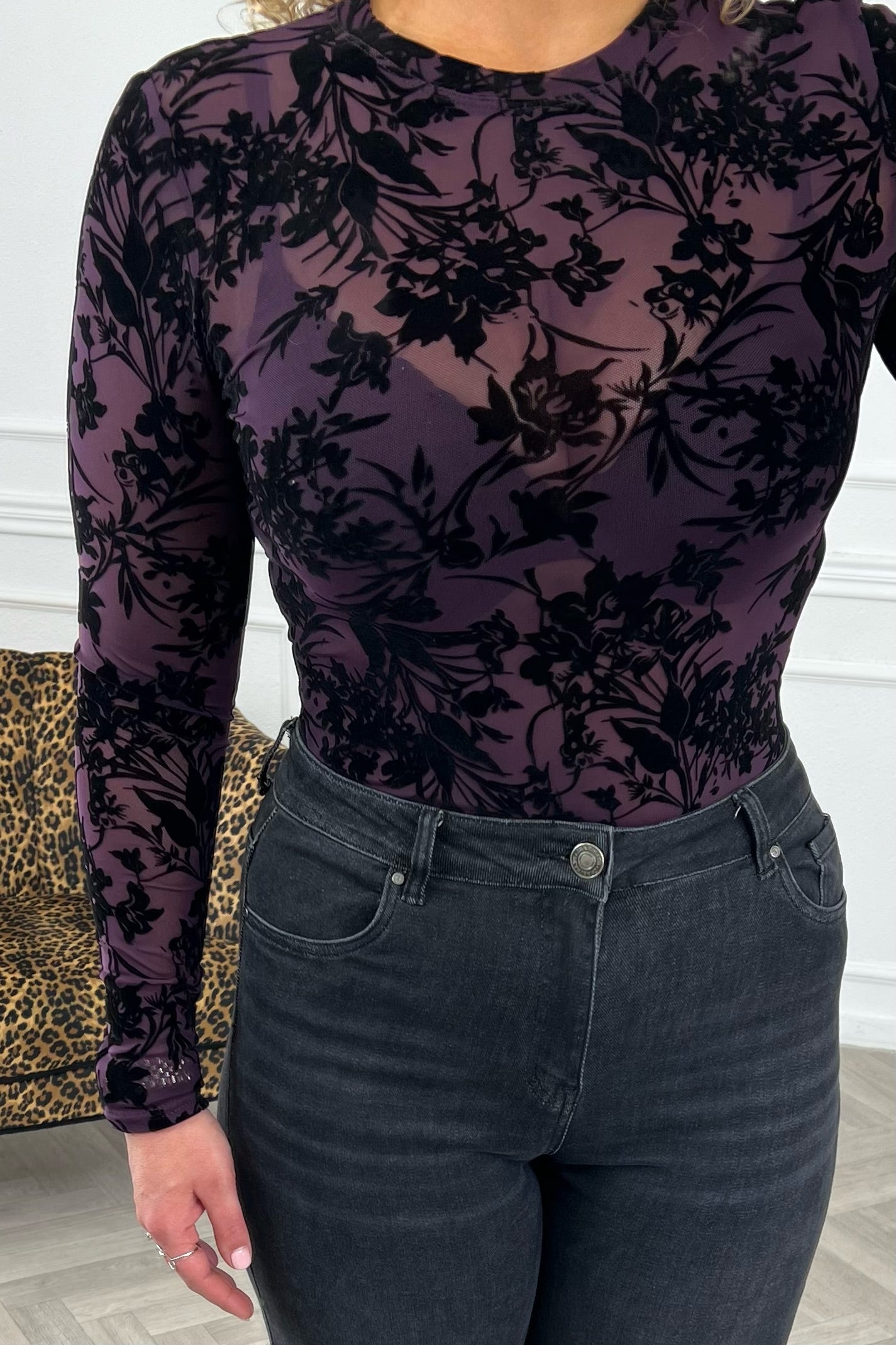Een enige doorschijnende body, met te gekke bloemen erop! Deze body valt wat langer en kan zeker tot een maat 42 gedragen worden! Shop de flower mesh body nu in plum.