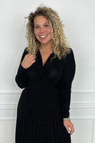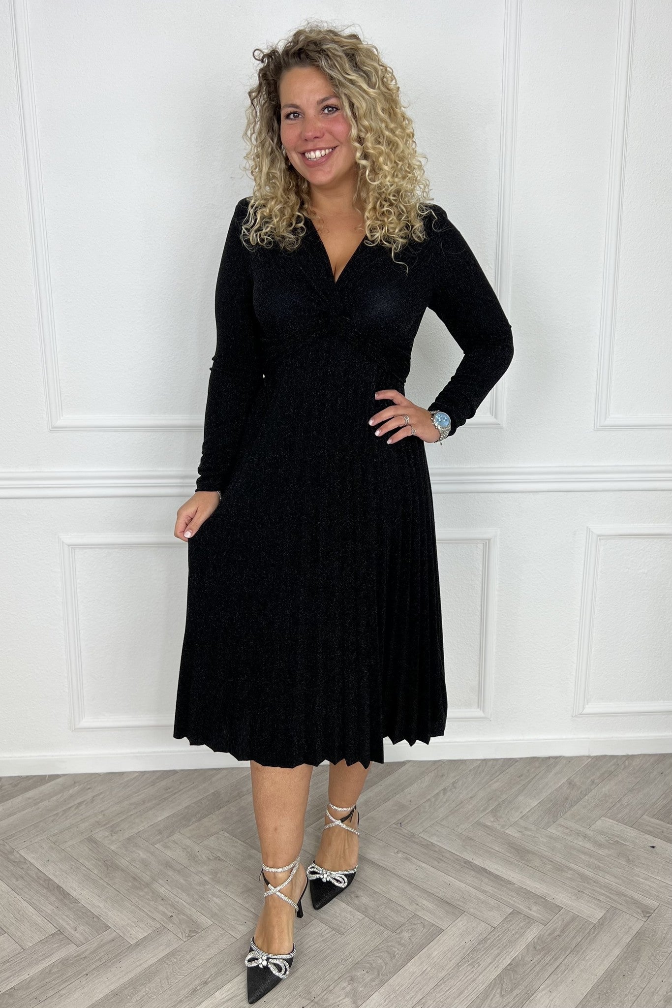Onze bestseller is terug! Deze prachtige jurken hebben een mooi knotted detail bij de borst en een plissé rok! Shop hem in black!
