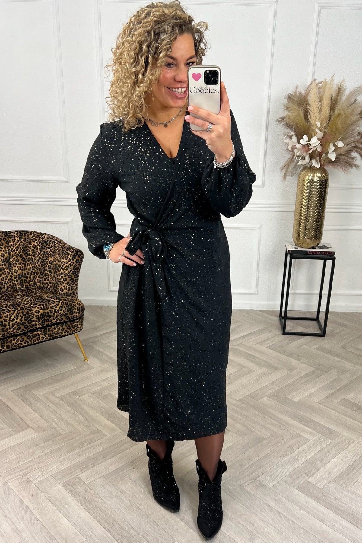 Onze populaire en supermooie Sparkle Wrap Dress nu ook in maxi variant! Shop hem nu in black one size (38-46).
