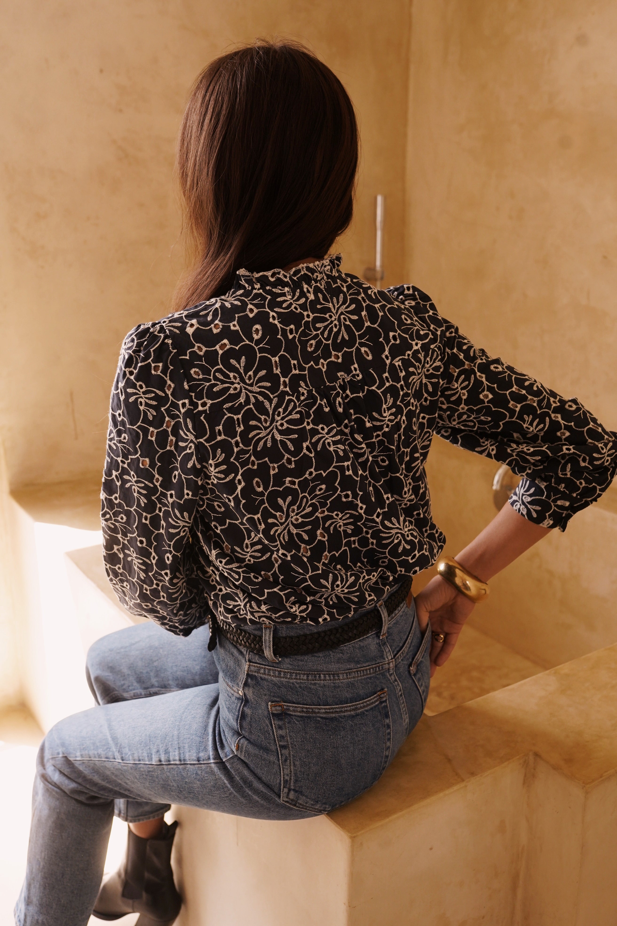 Deze superleuke broderie blouse maakt jouw outfit helemaal af! Shop hem nu in navy.