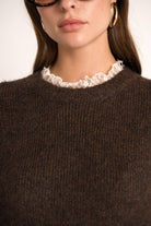 Perfect Lace Sleeve Sweater - Brown