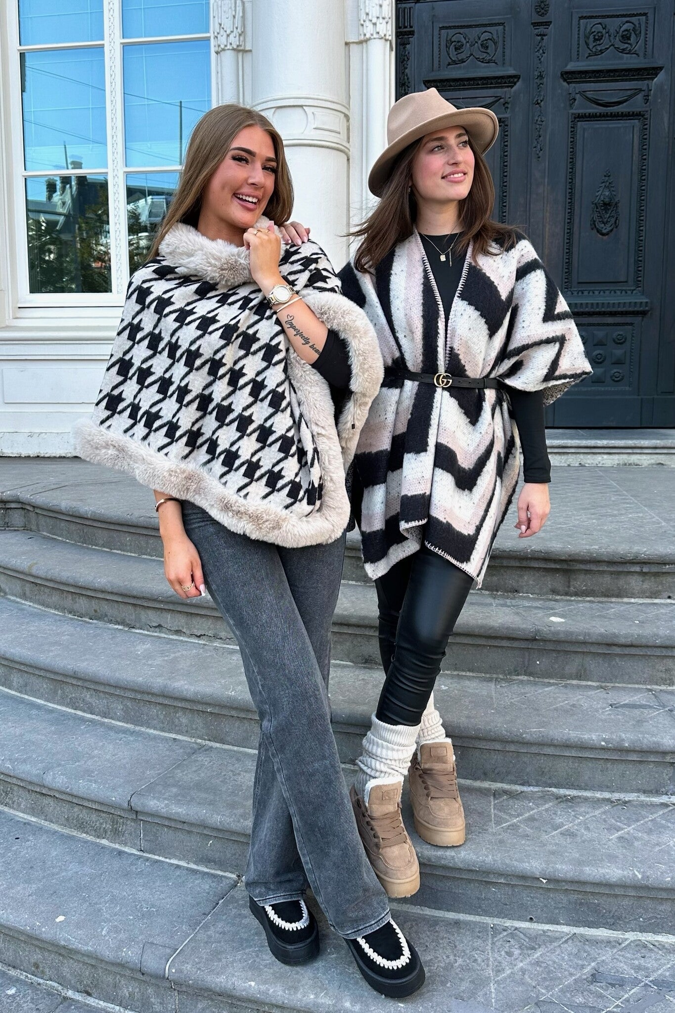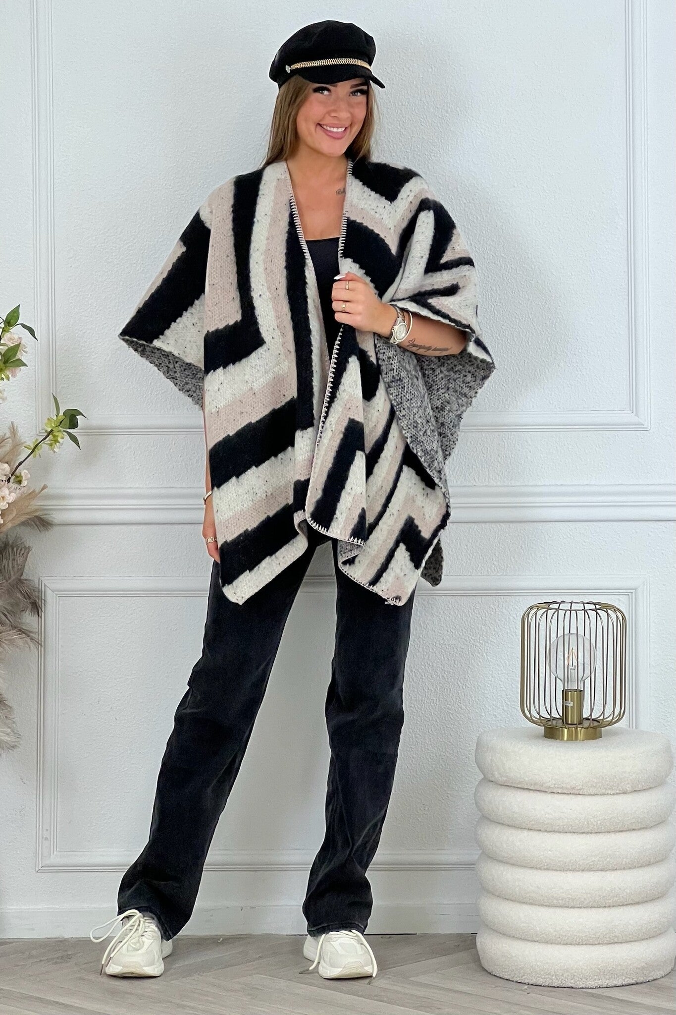Deze poncho sla houdt je heerlijk warm! Shop hem in pink/beige/black!