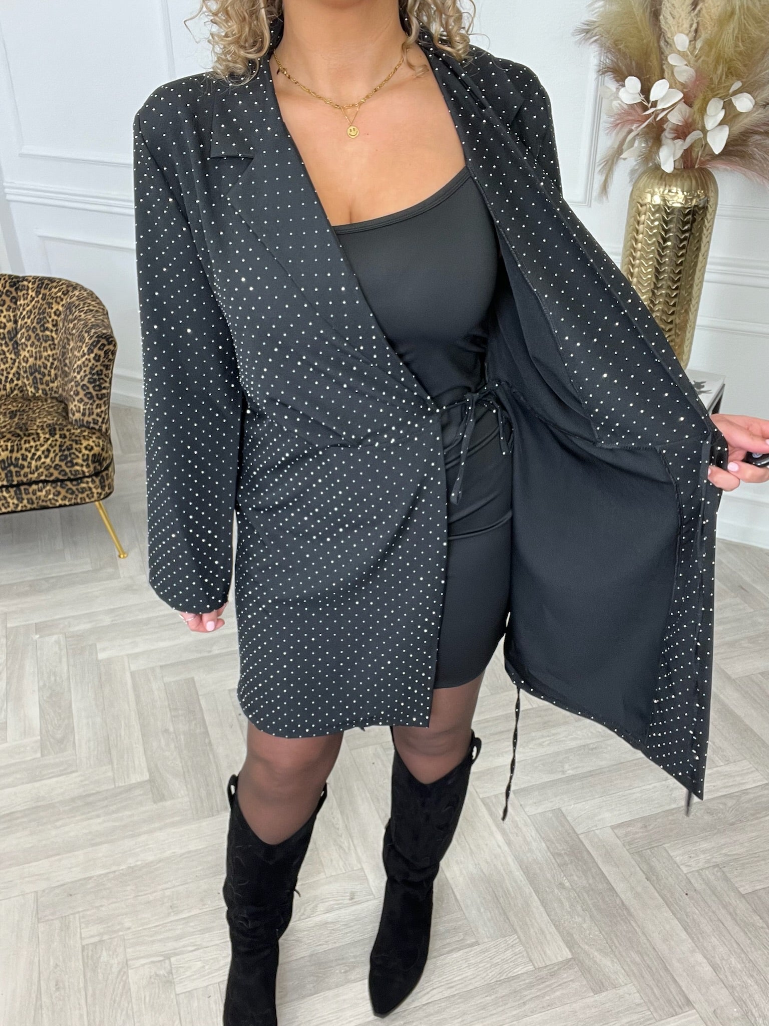 Elegance Glitter Wrap Blazer Dress - Black