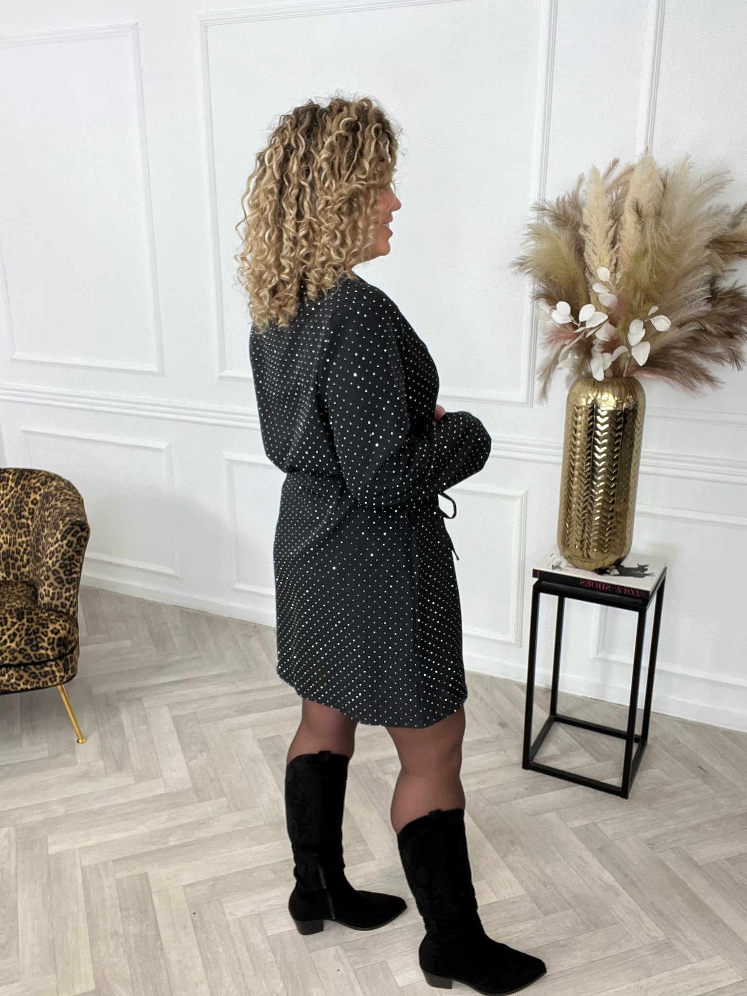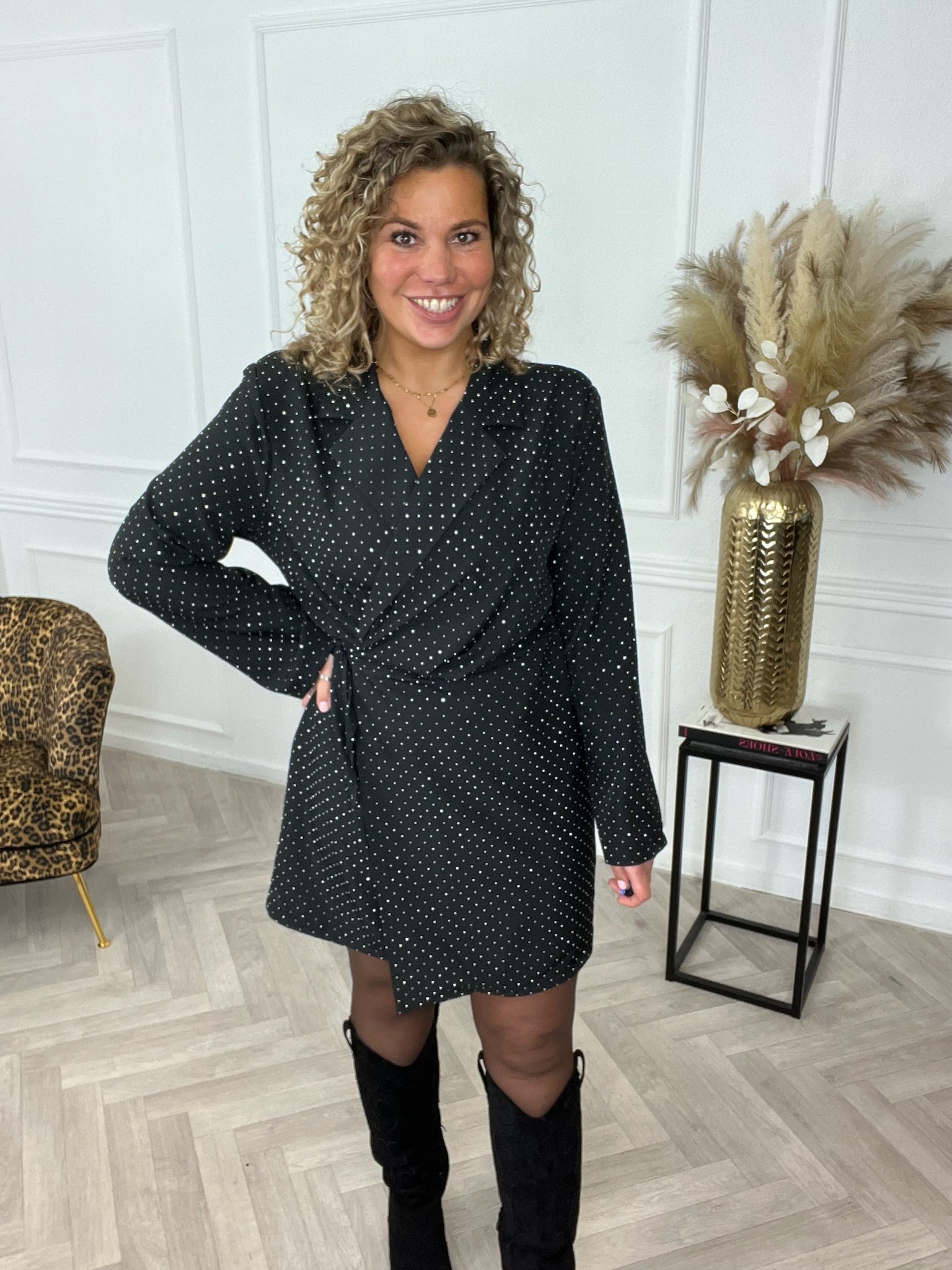 We hebben onze bestseller nu ook in een glitter jurk! Het is een mooie wrap dress en dus vast te maken met een strikje aan de zijkant. We hebben de jurk in regular en curvy, dus shop de elegance glitter wrap dress in black!