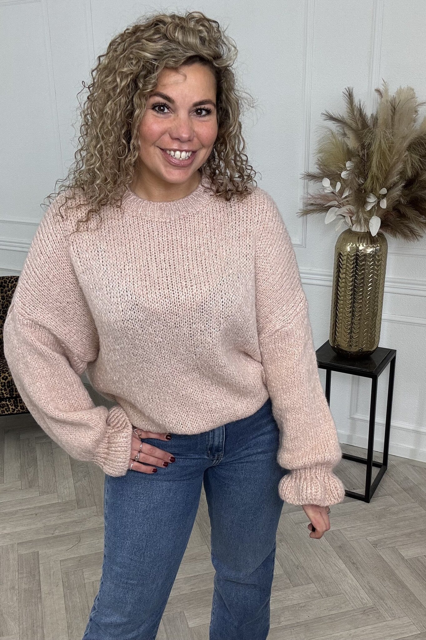 Deze heerlijk zachte sweater is gehaakt en heeft leuke ruffle mouwen. Ideaal voor de koudere dagen! Shop hem in soft pink!