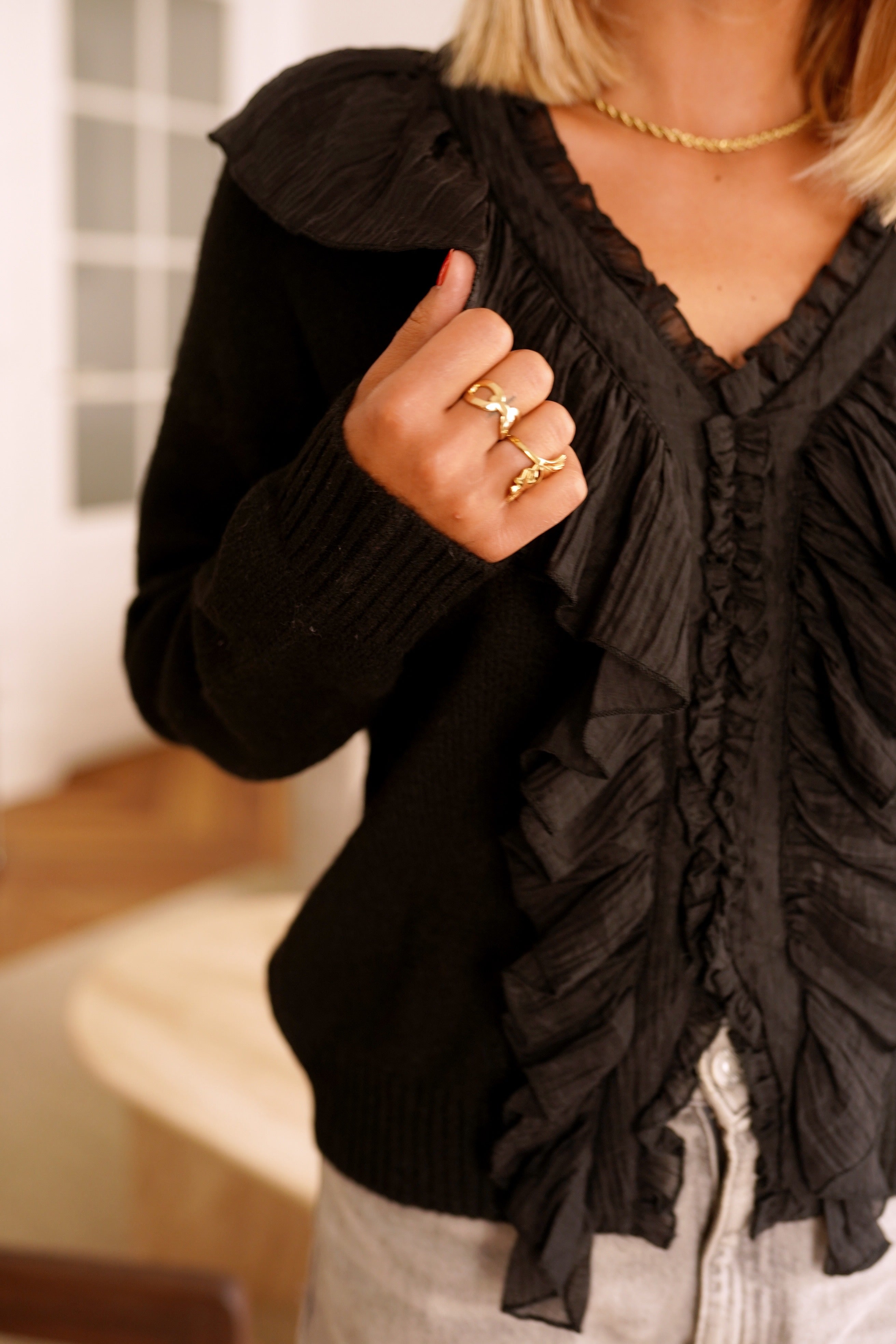 Wonderful Ruffle Sweater - Black