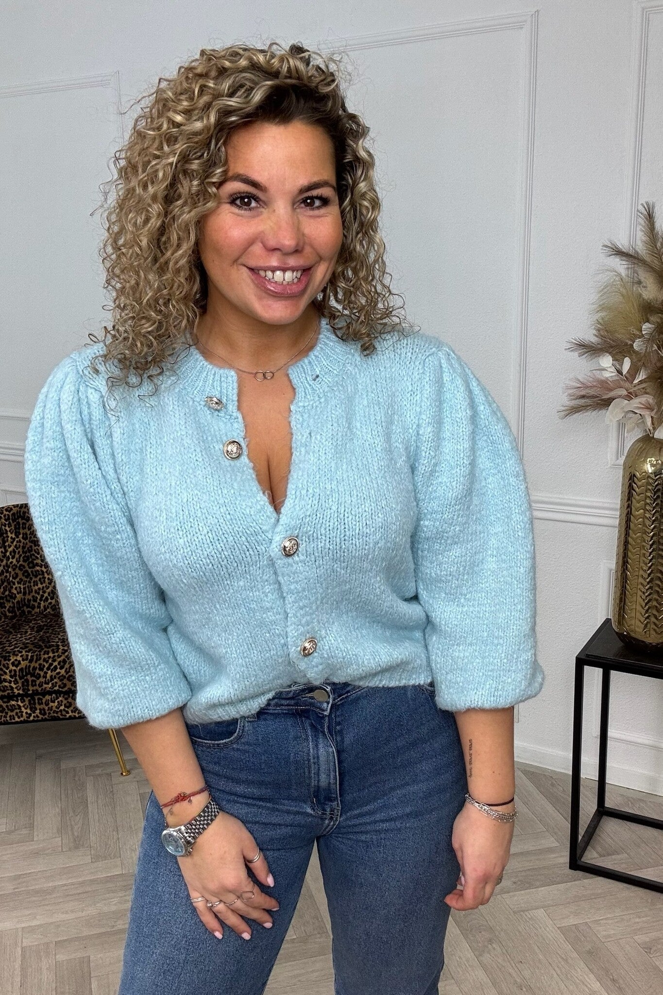 Puffy Sleeve Knitted Vest - Light Blue