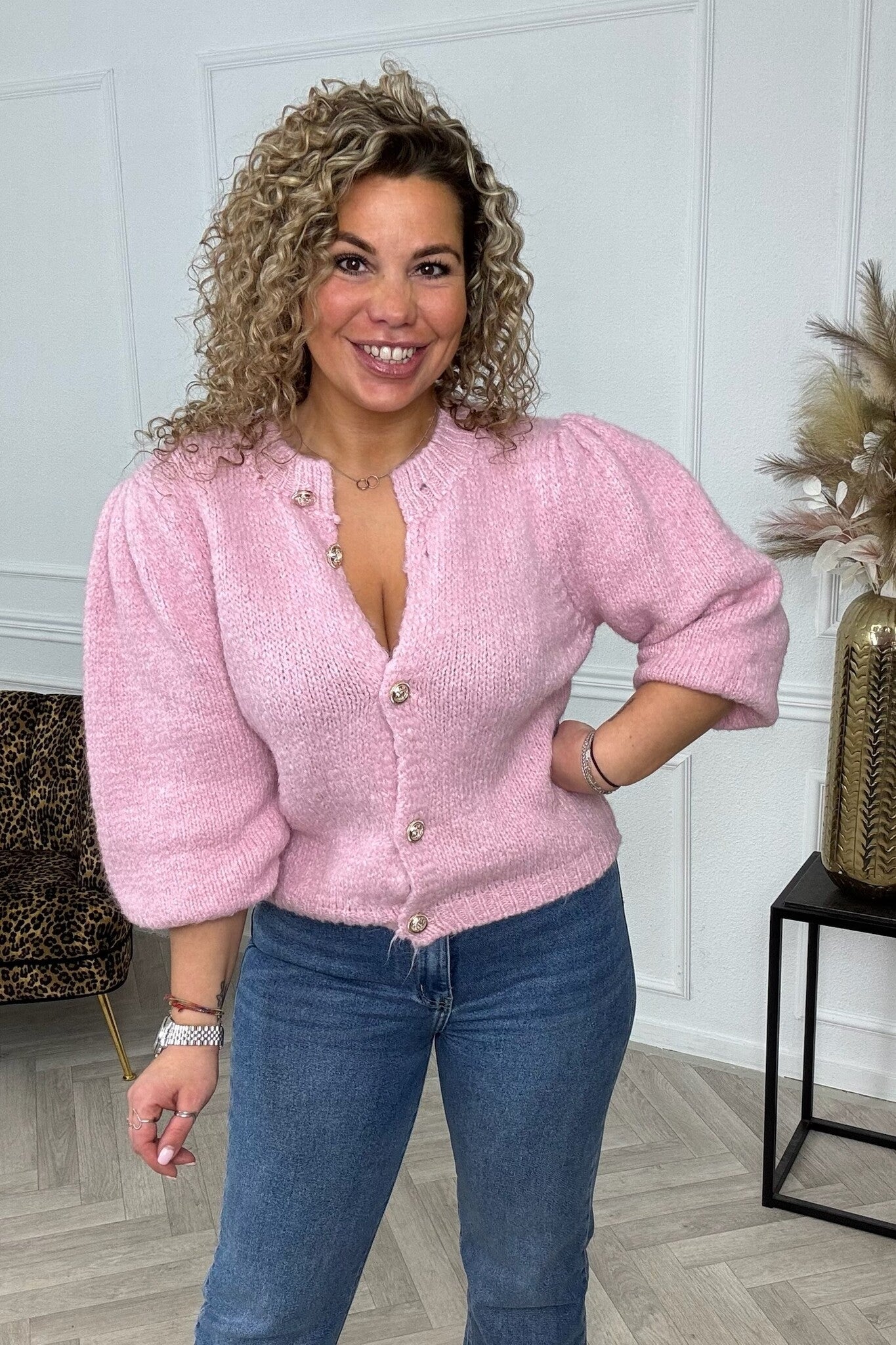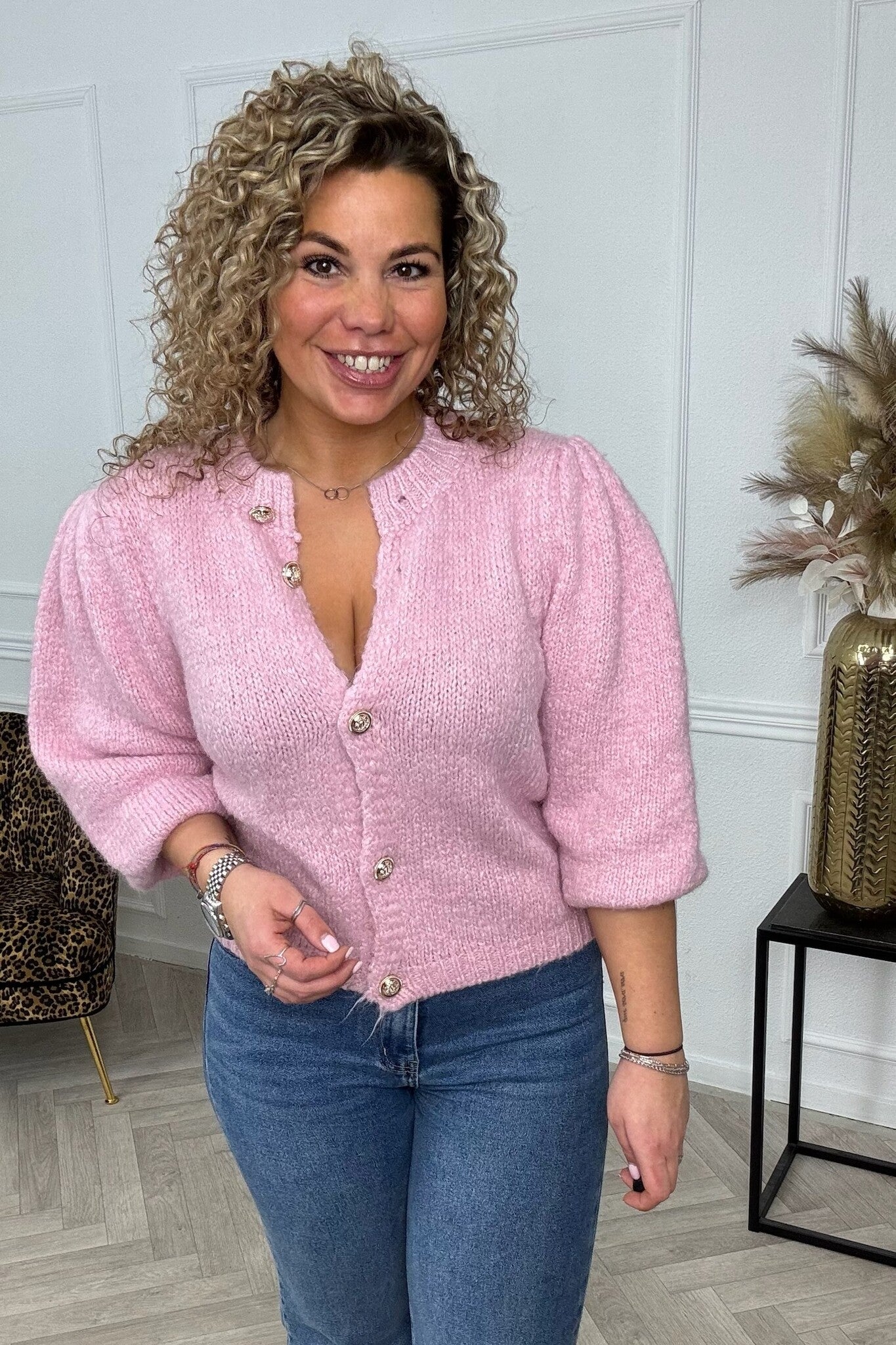 Puffy Sleeve Knitted Vest - Pink