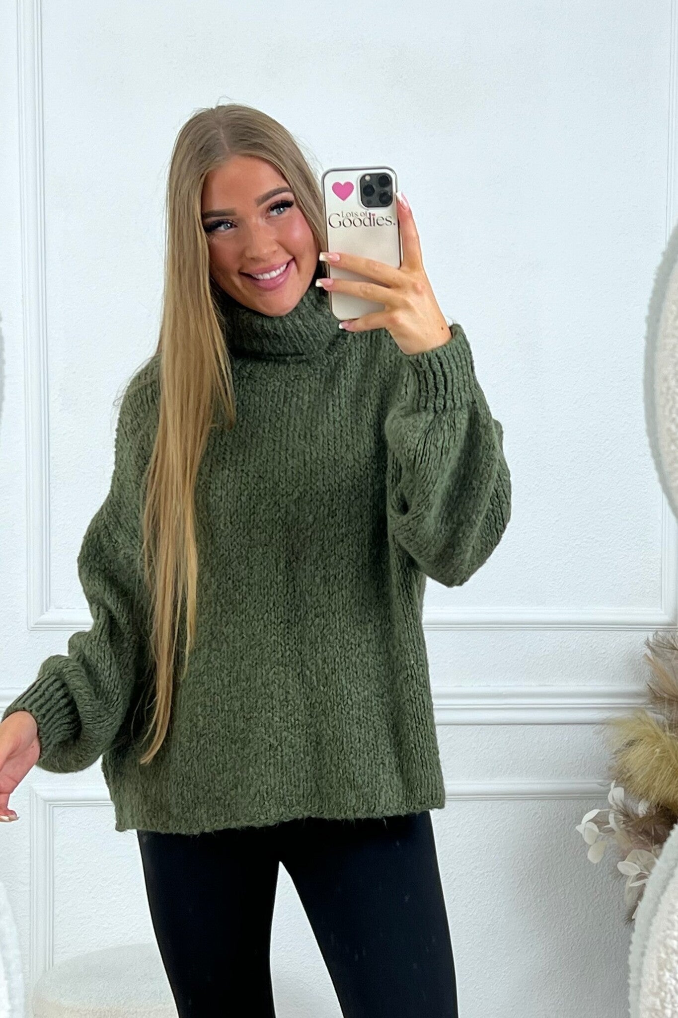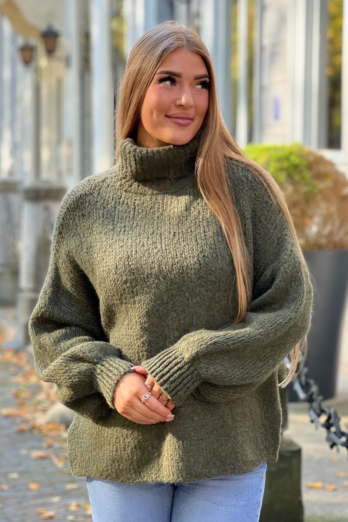 Knitted Livia Coll Sweater - Armygreen
