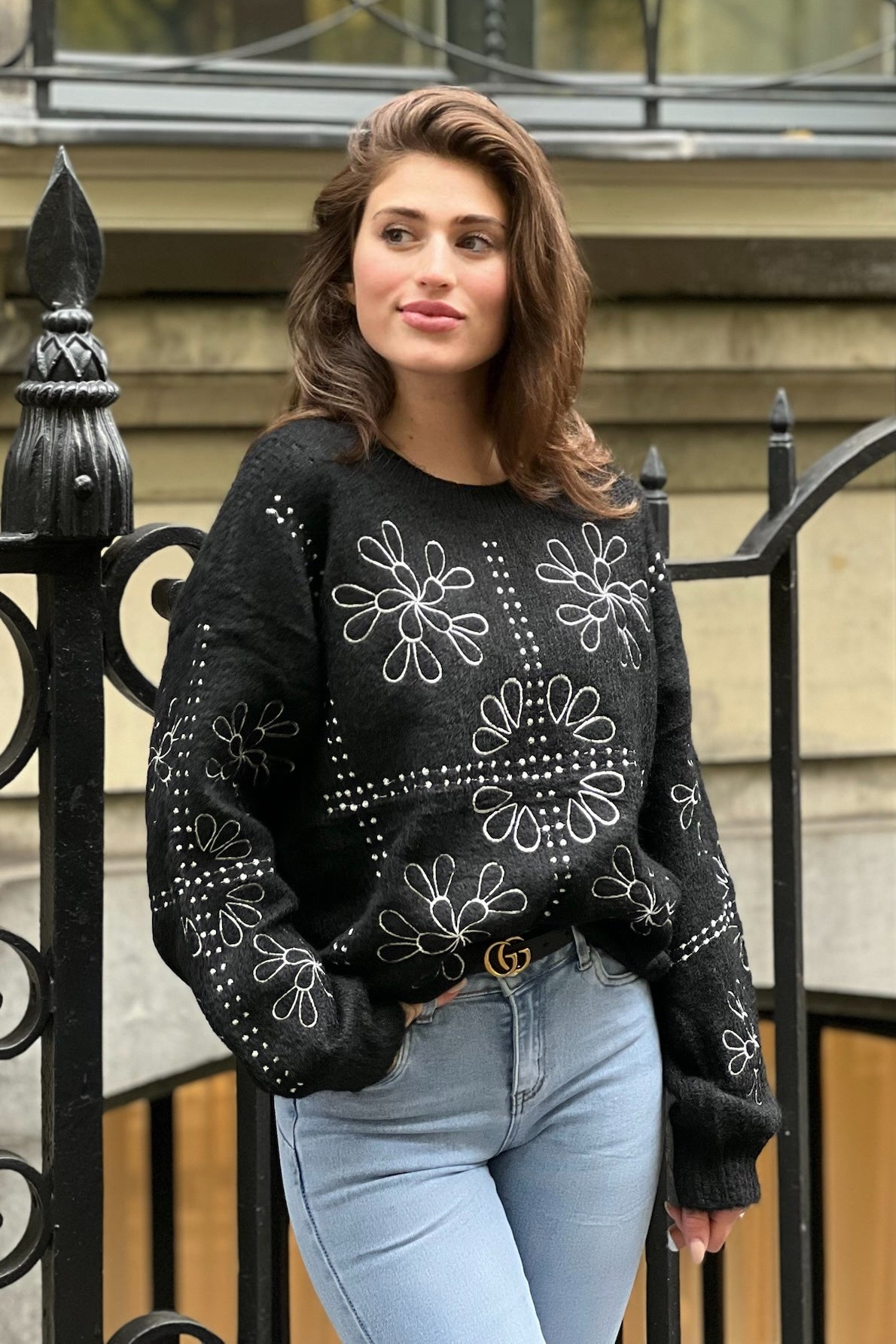 Knitted Embroidered Sweater - Black