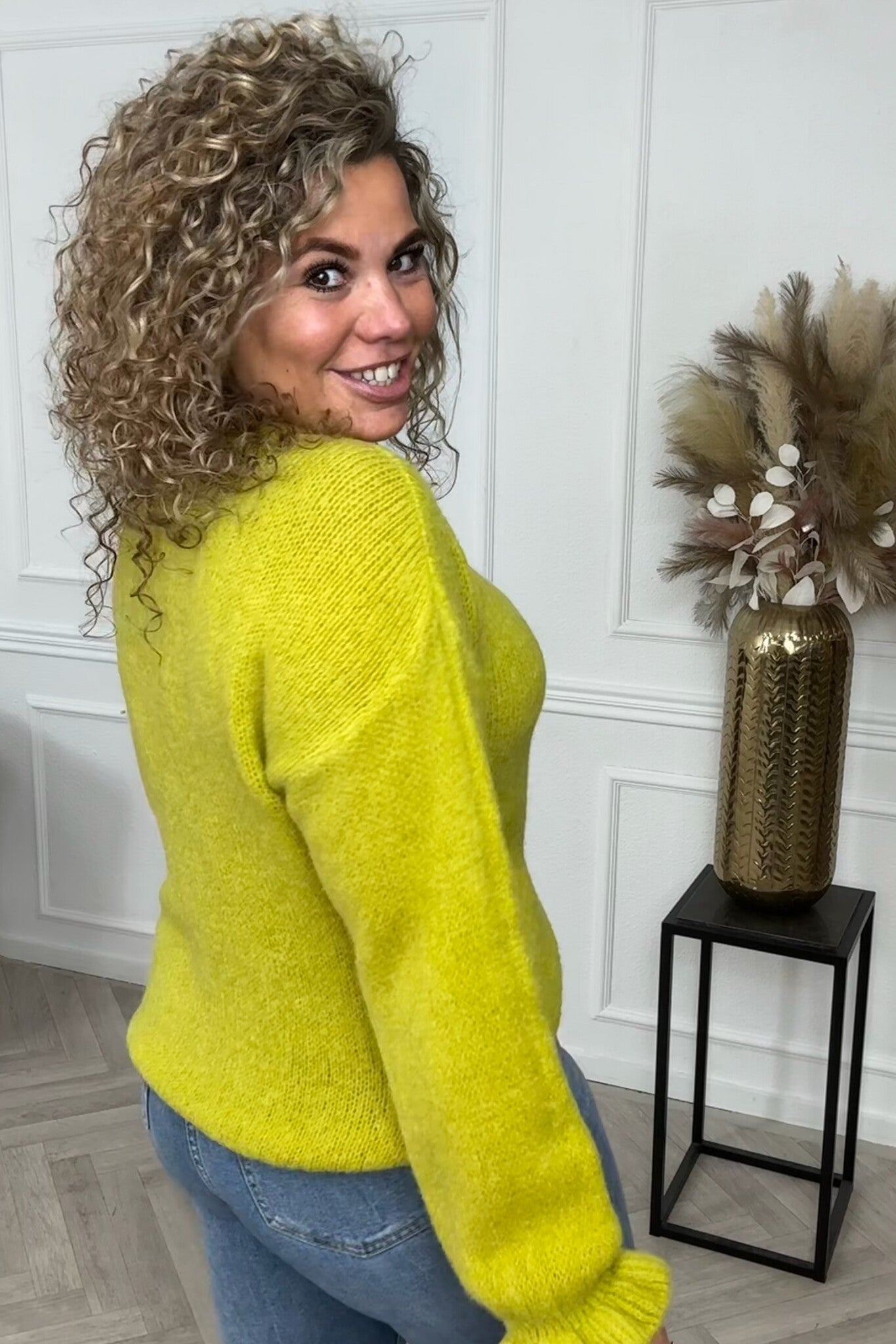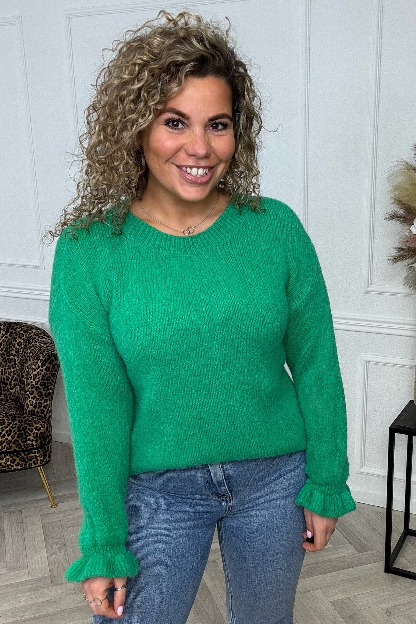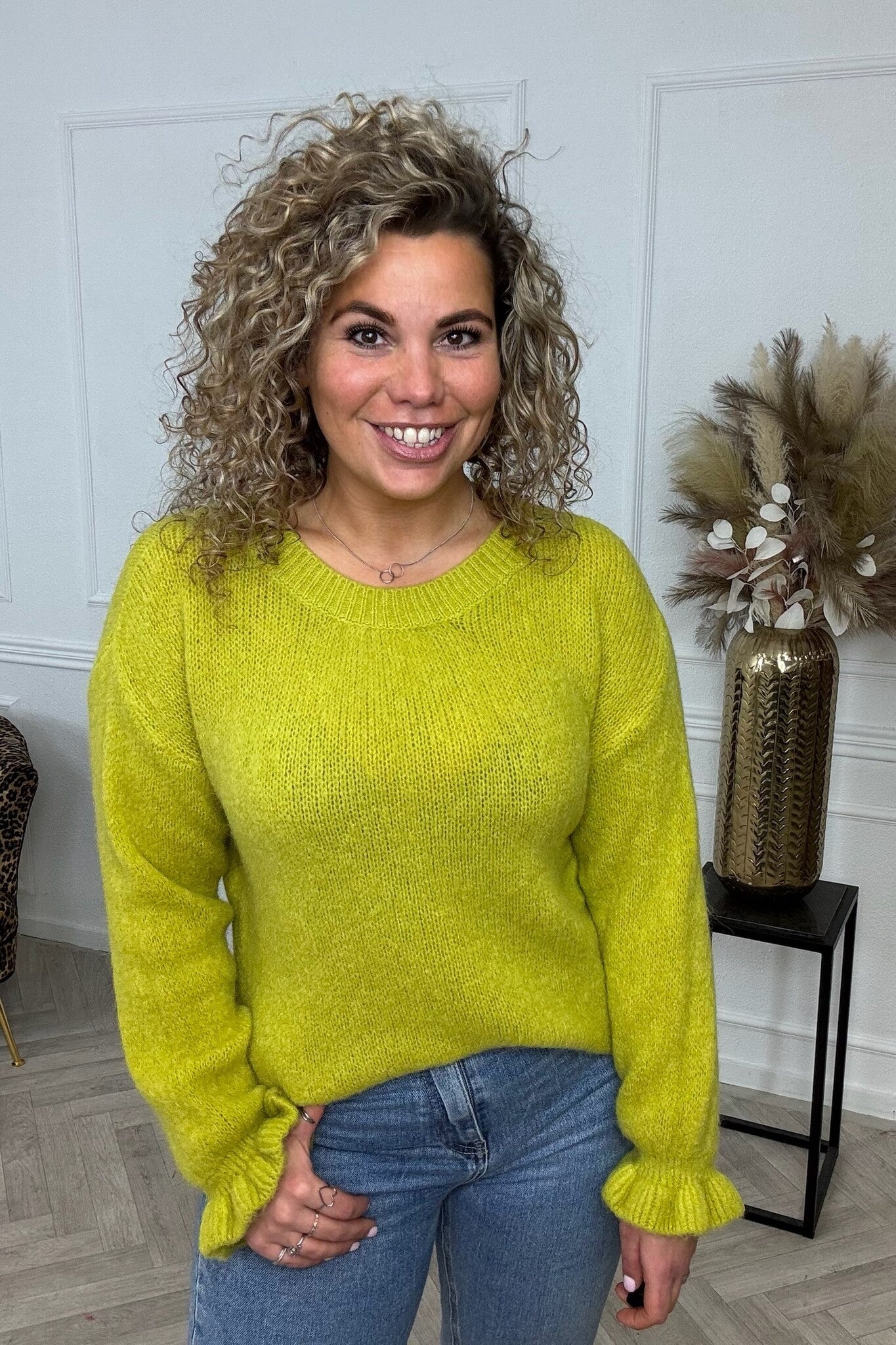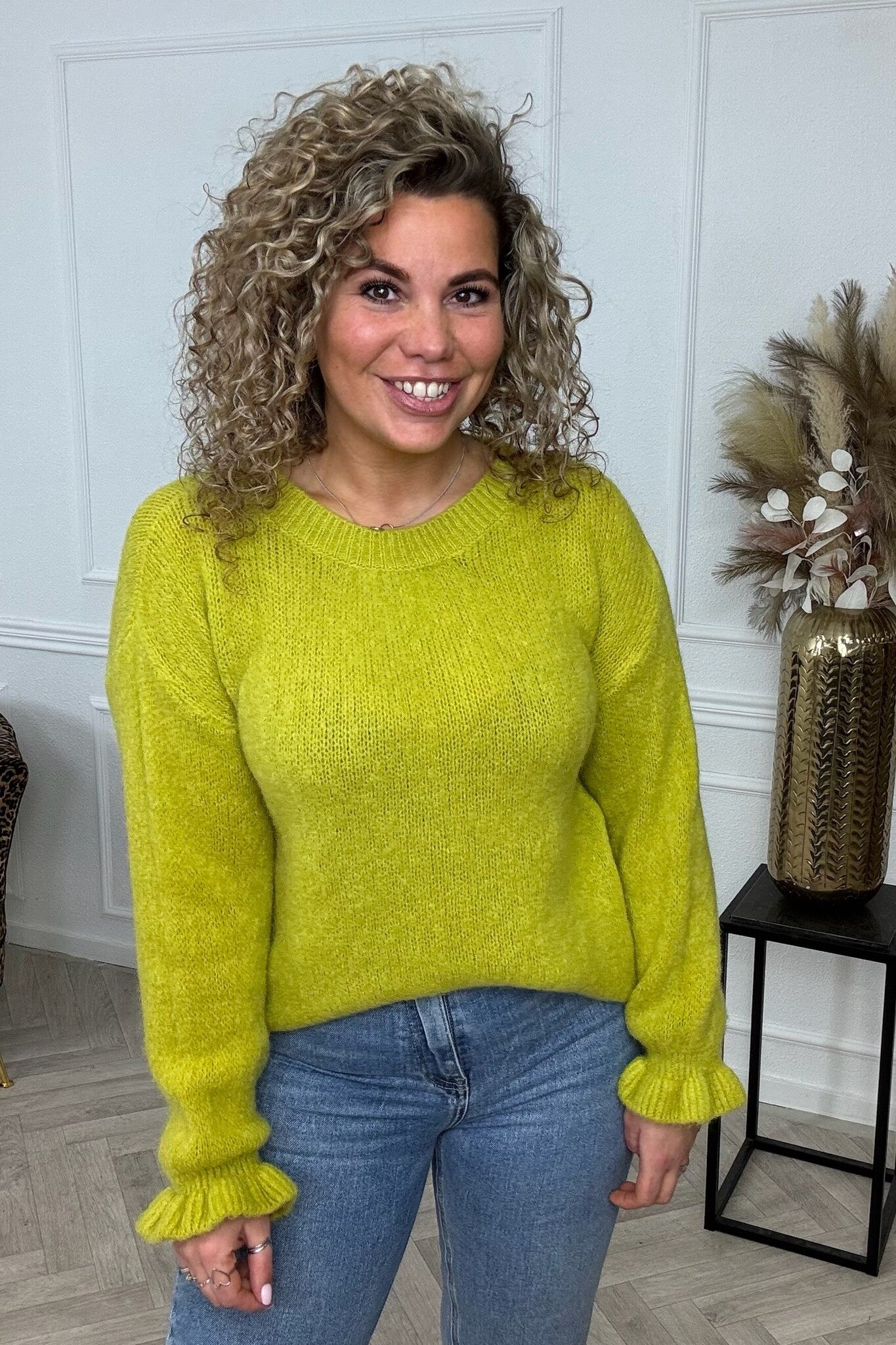 Basic Knitted Ruffle Sweater - Lime Green