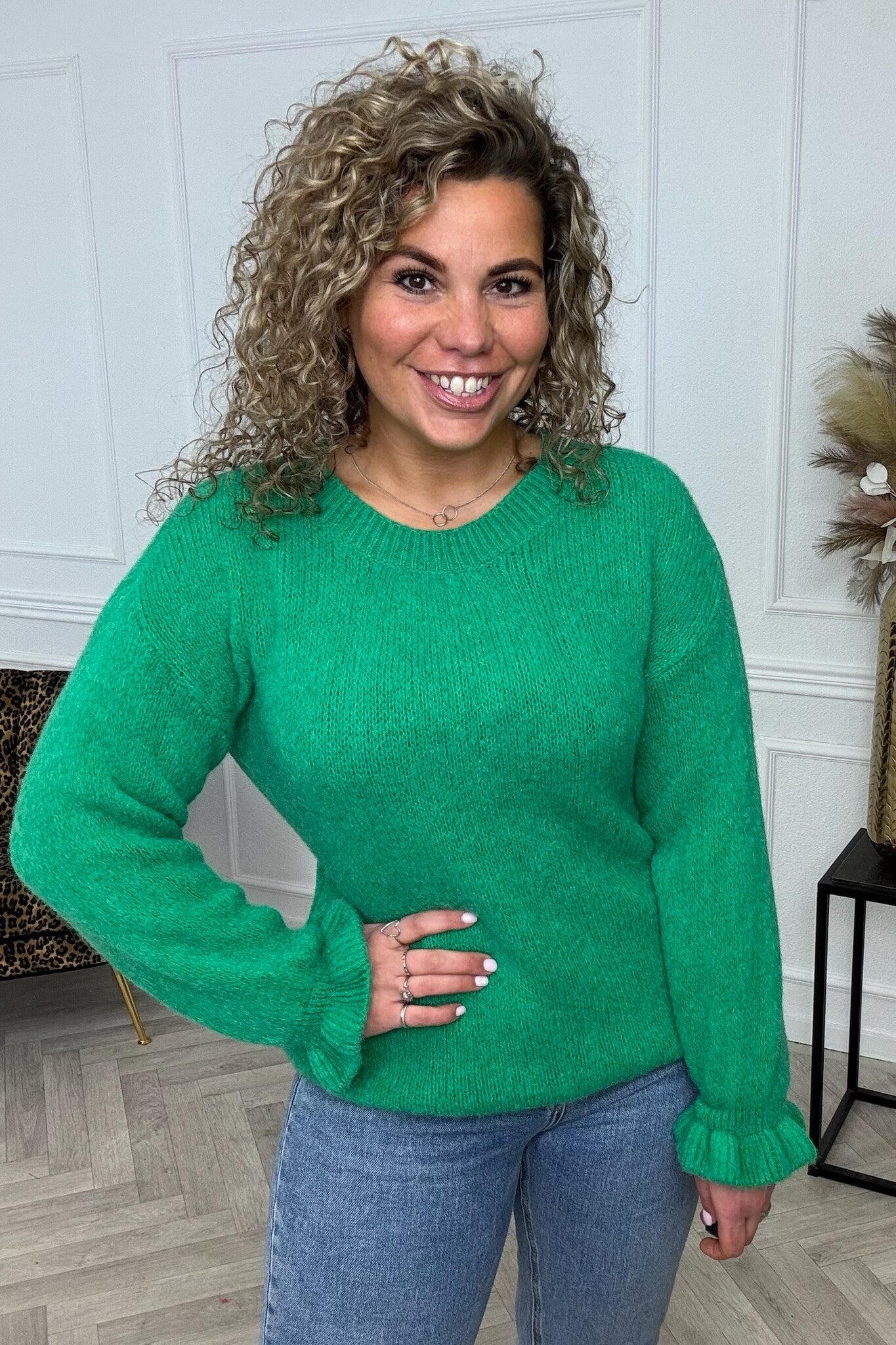 Basic Knitted Ruffle Sweater - Green