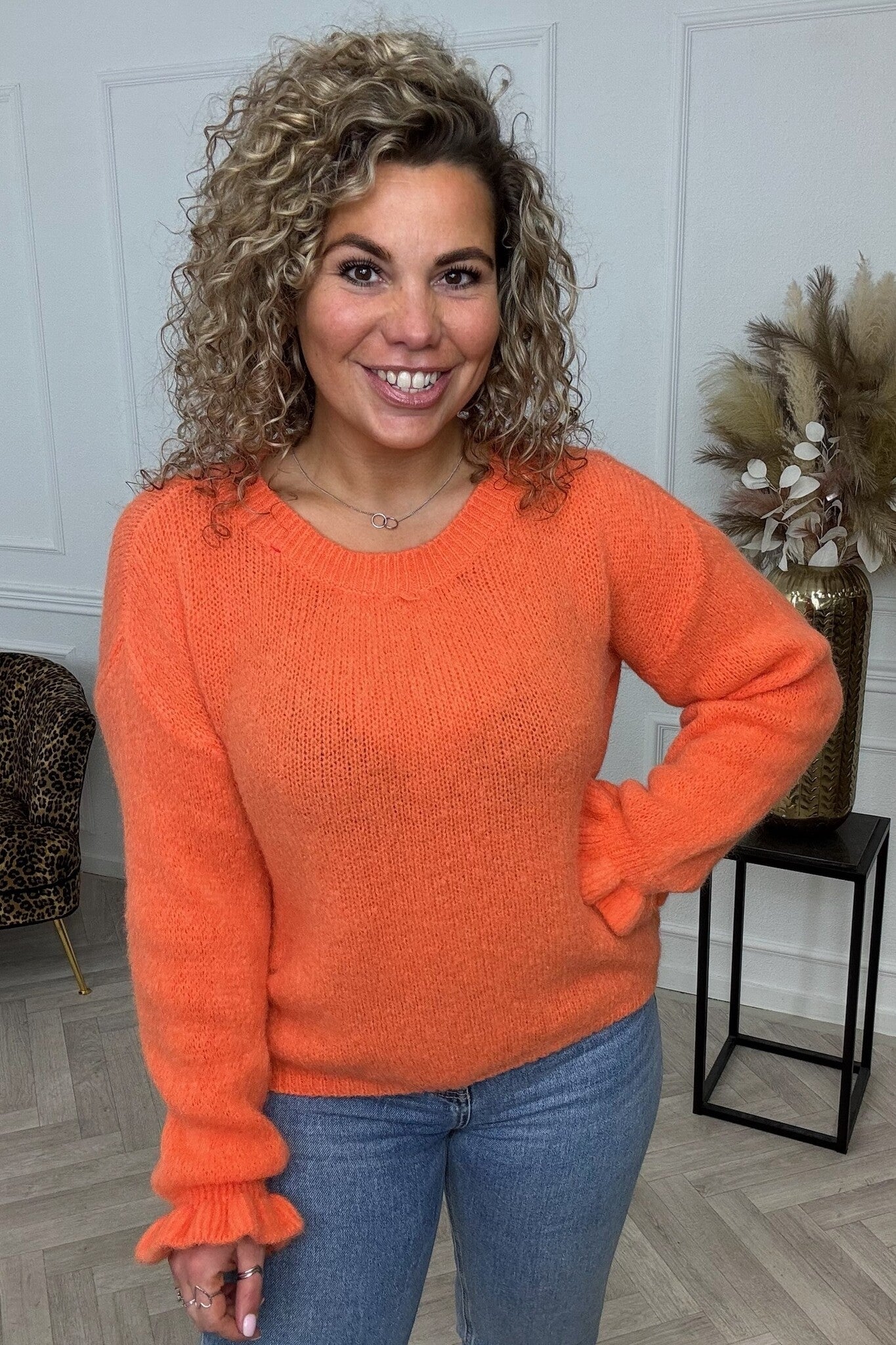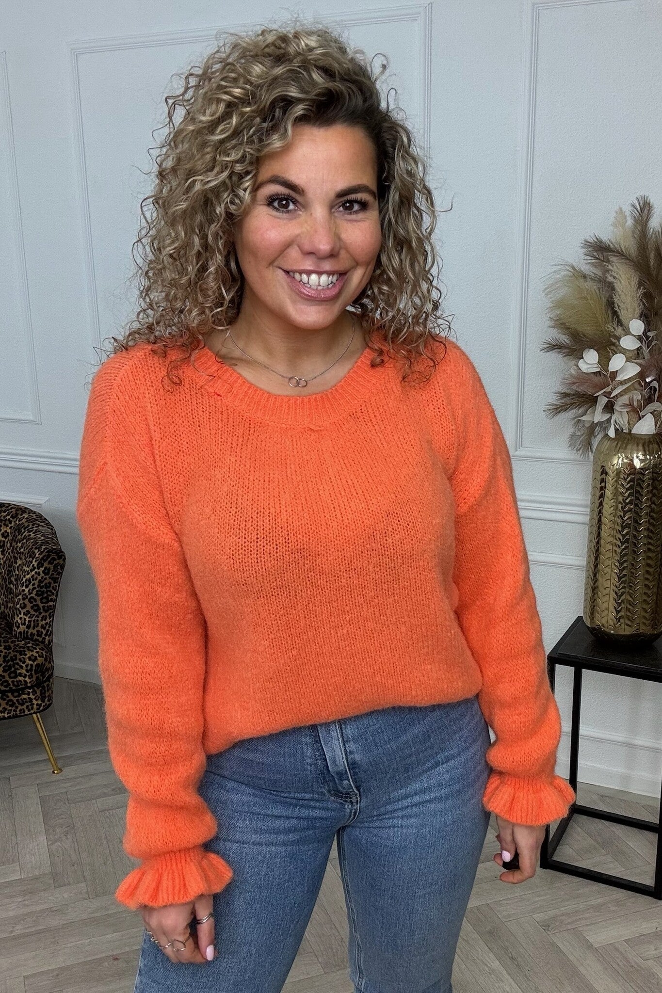 Basic Knitted Ruffle Sweater - Orange