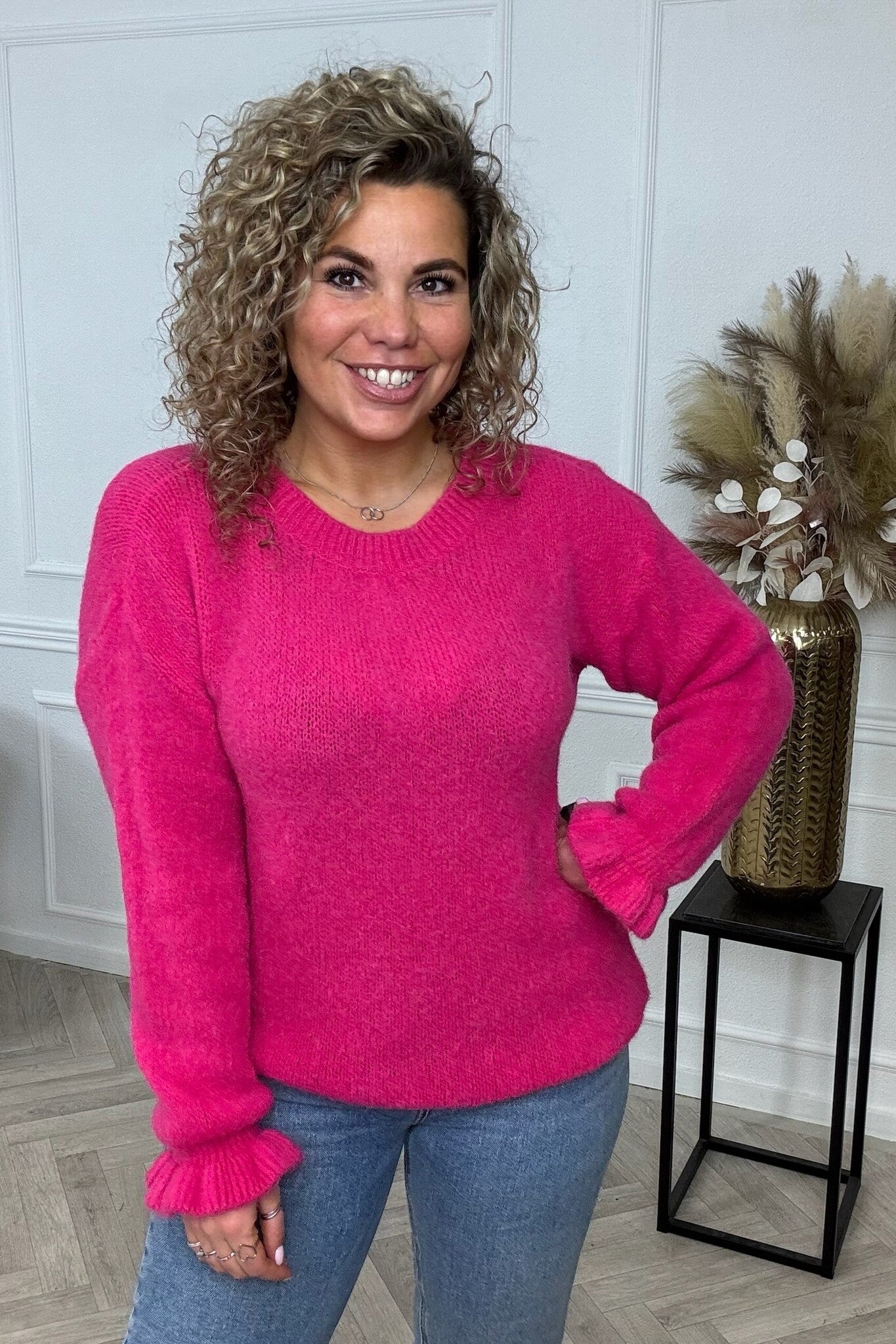 Basic Knitted Ruffle Sweater - Pink