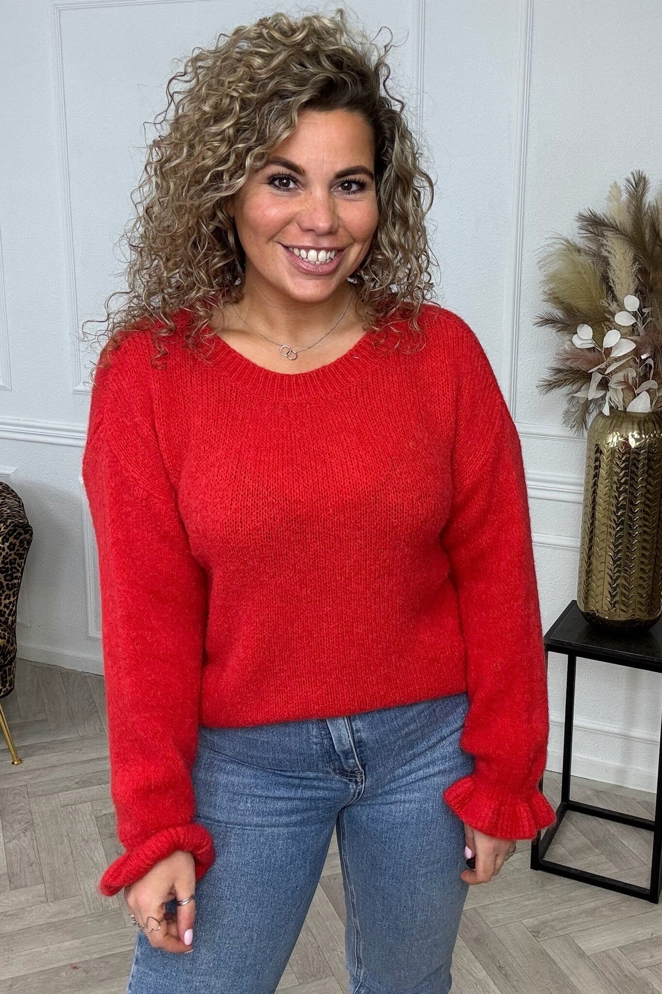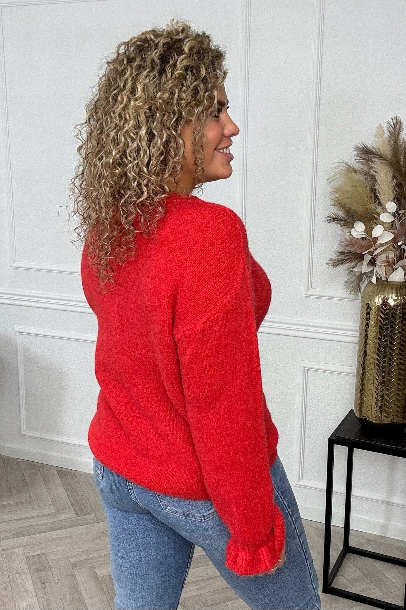 Basic Knitted Ruffle Sweater - Red