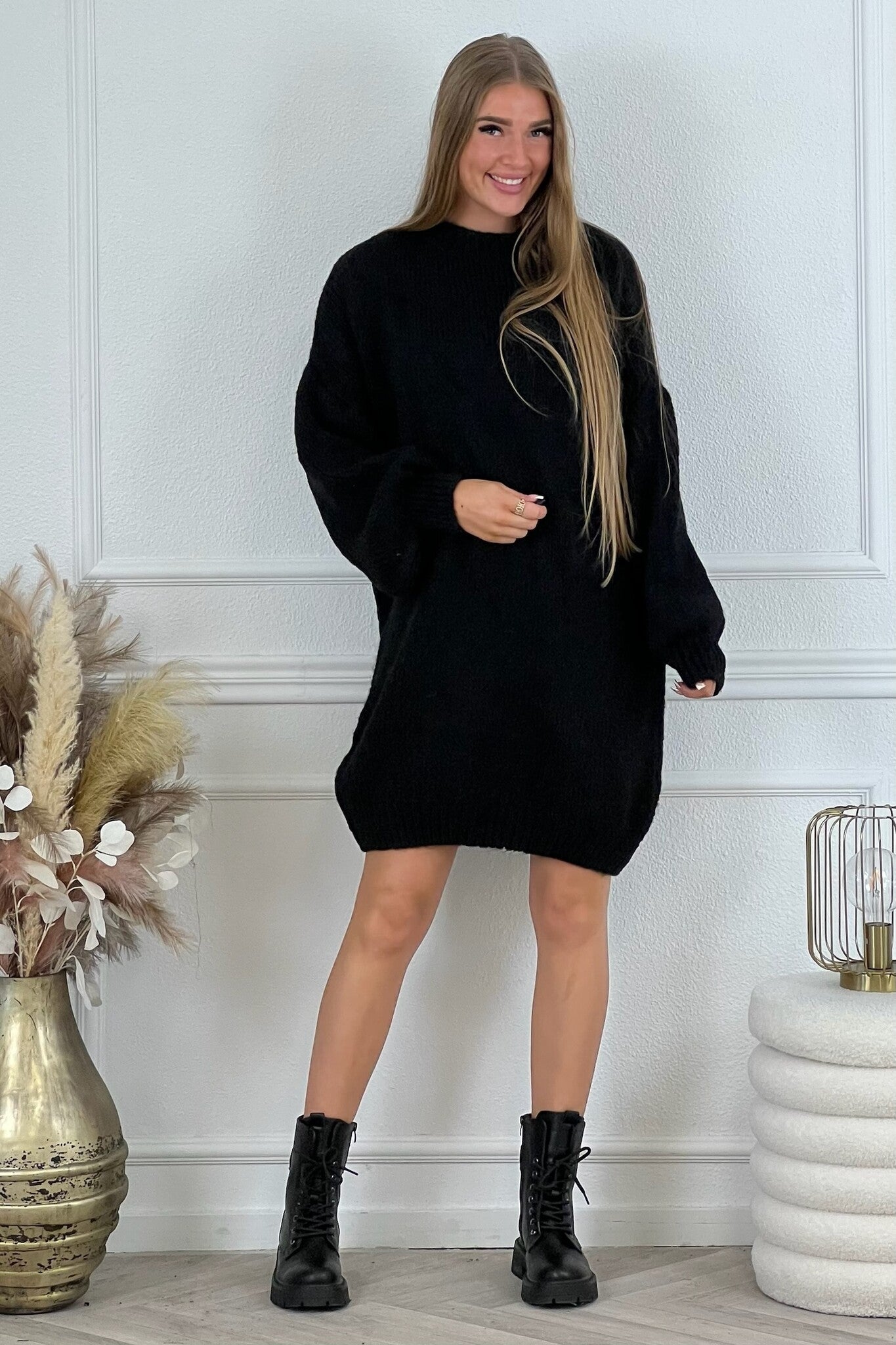 Cozy Knitted Sweater Dress - Black