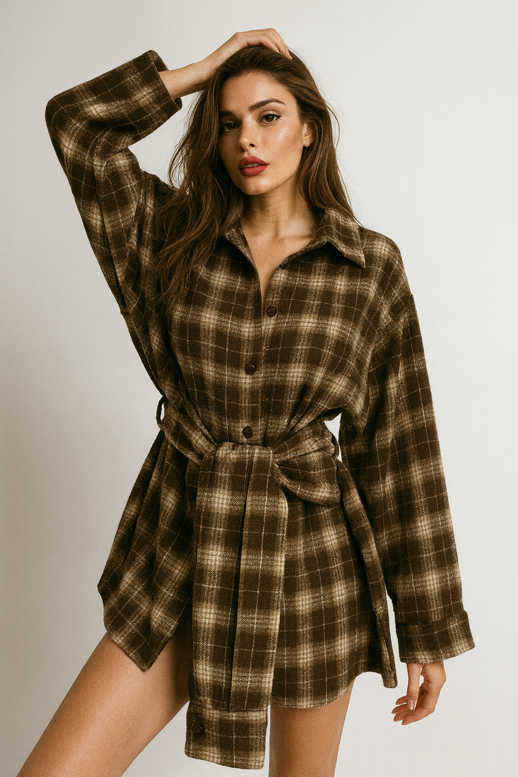 Isa Checkered Blouse Dress - Brown