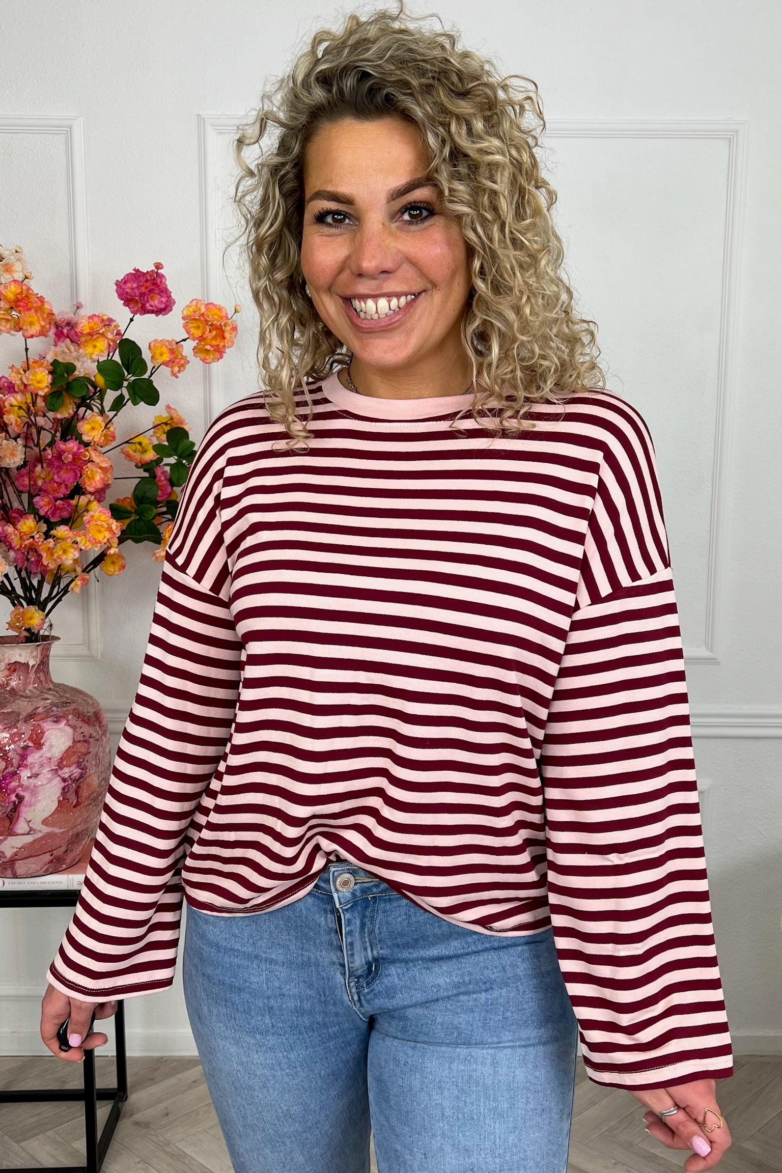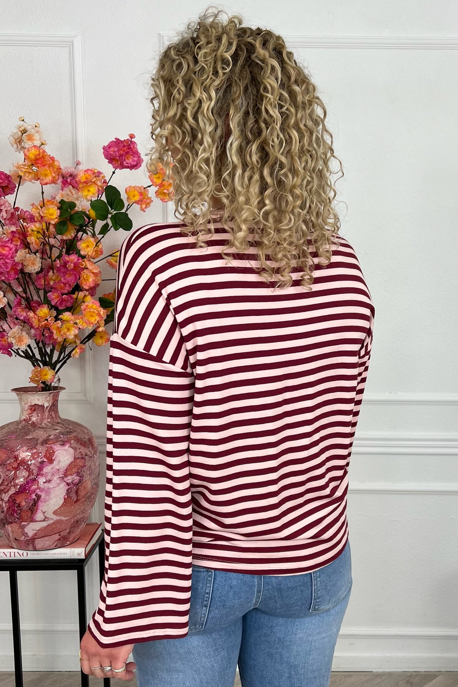 Long Sleeve Striped Shirt - Bordeaux/Light Pink