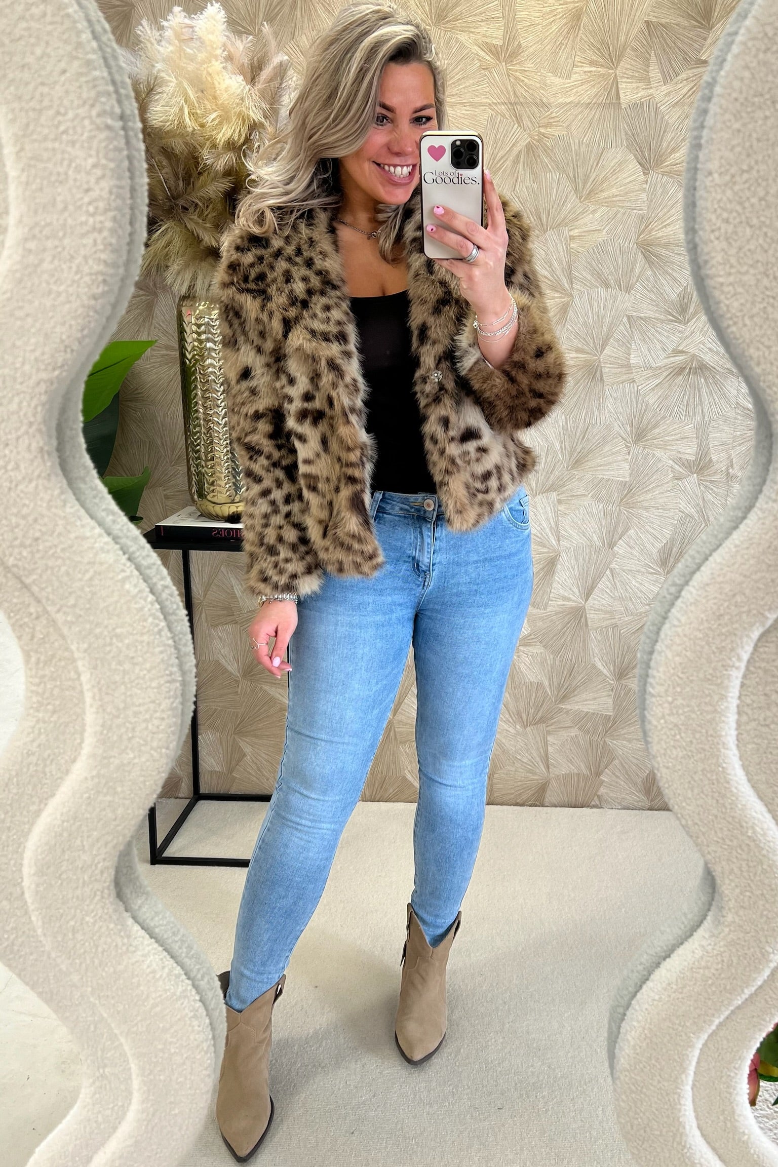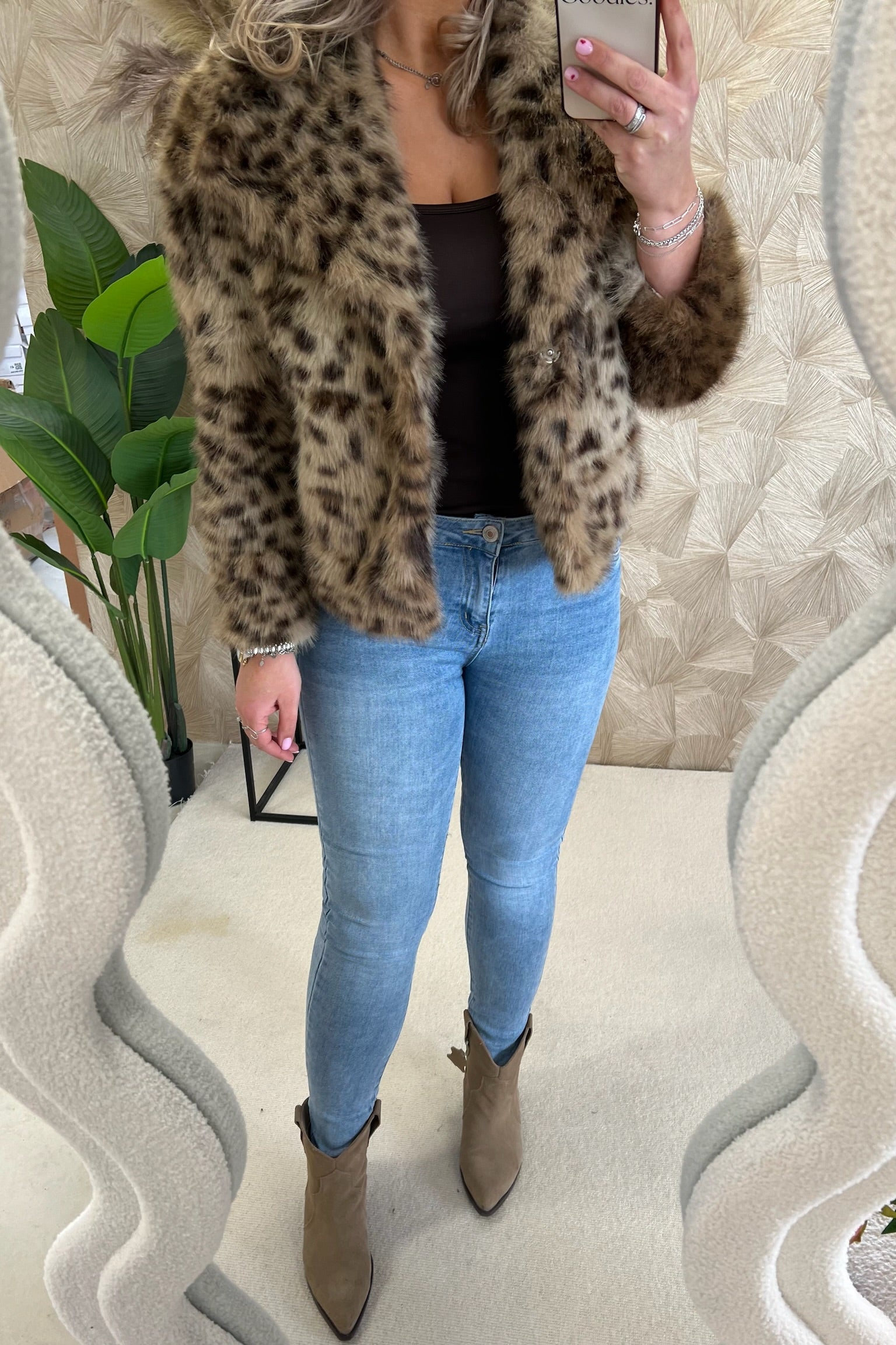 Leopard Fake Fur Jacket - Brown