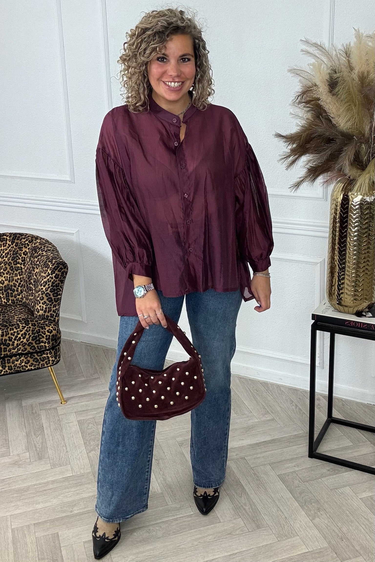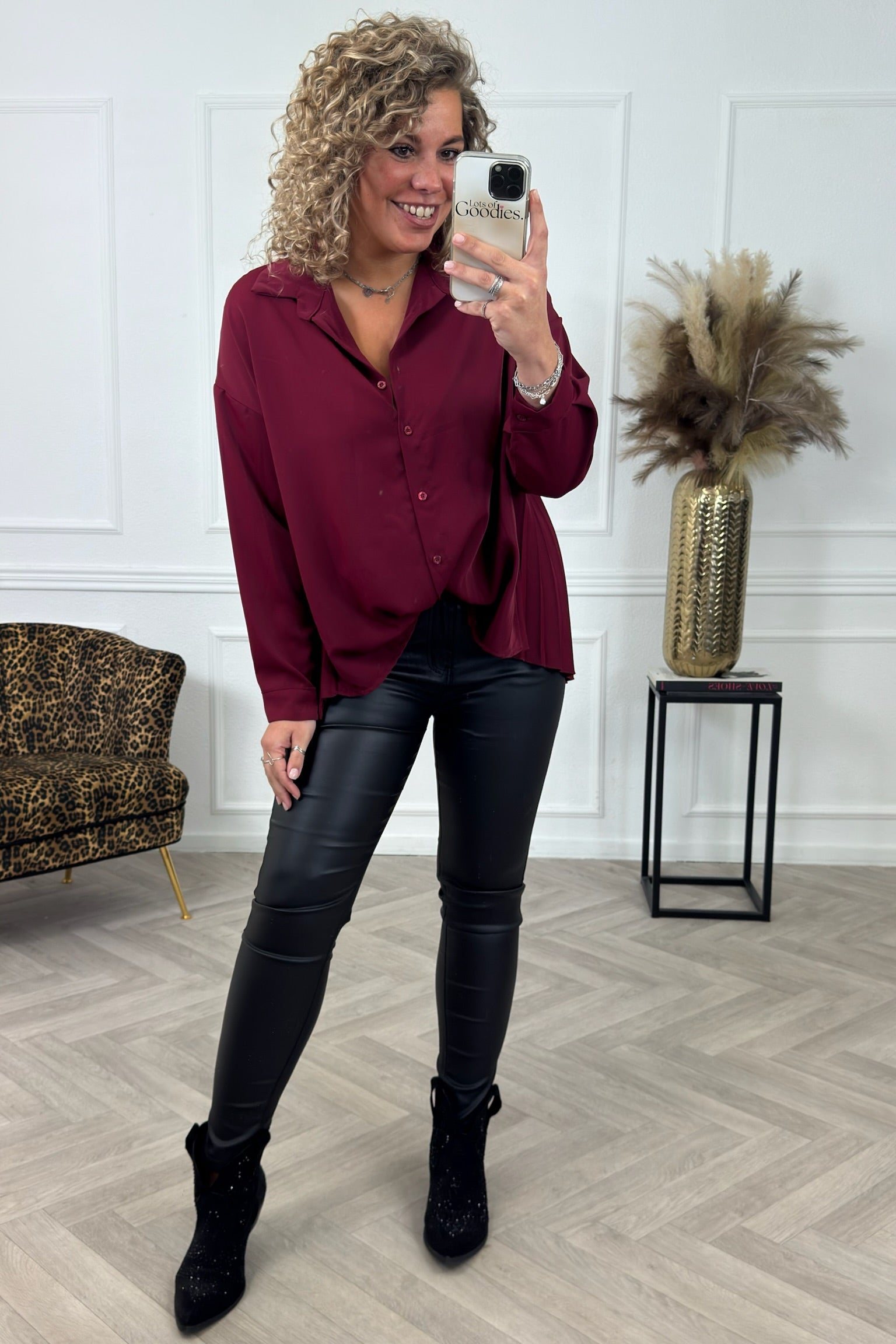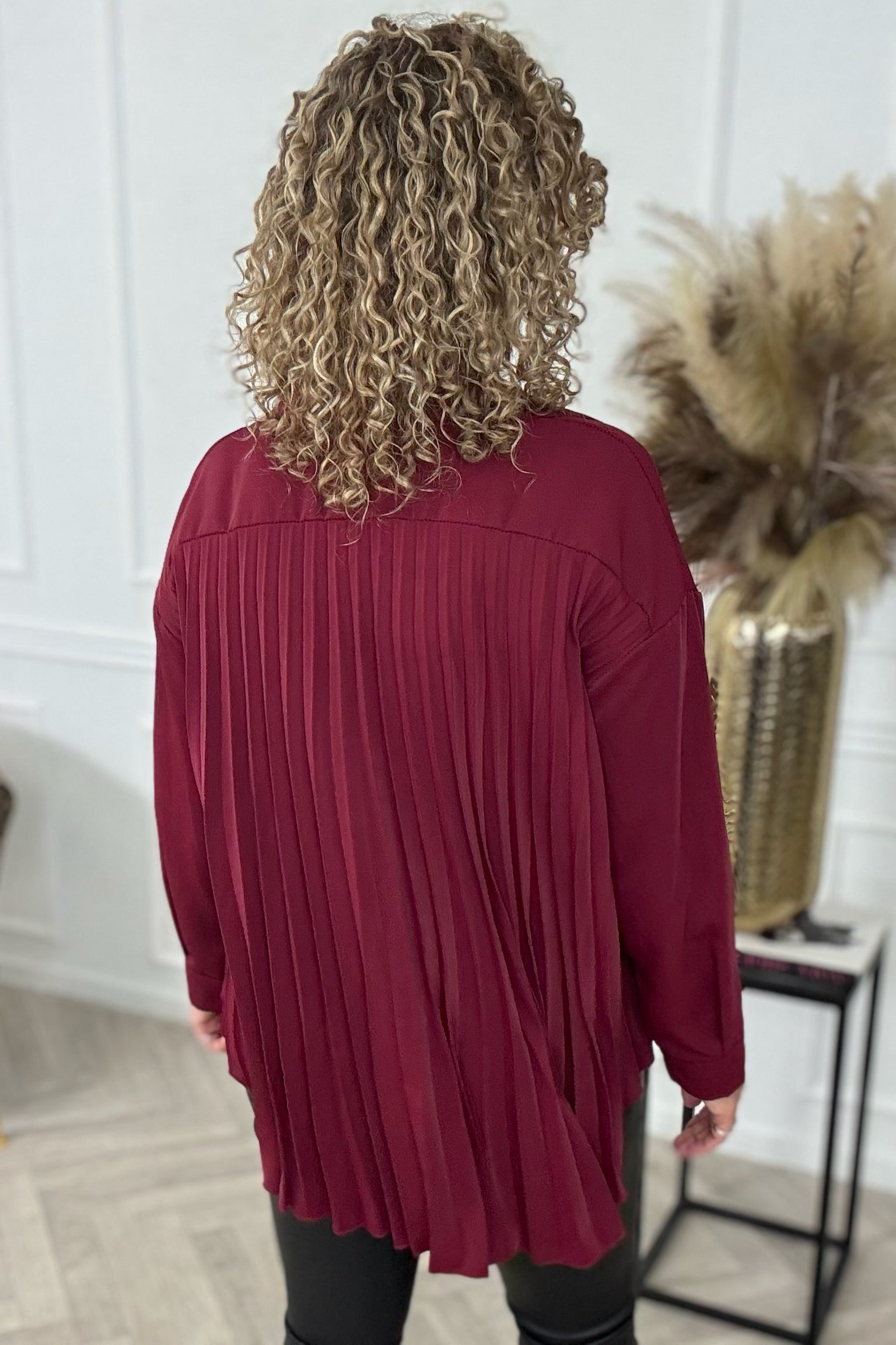 Plisse Back Blouse - Bordeaux