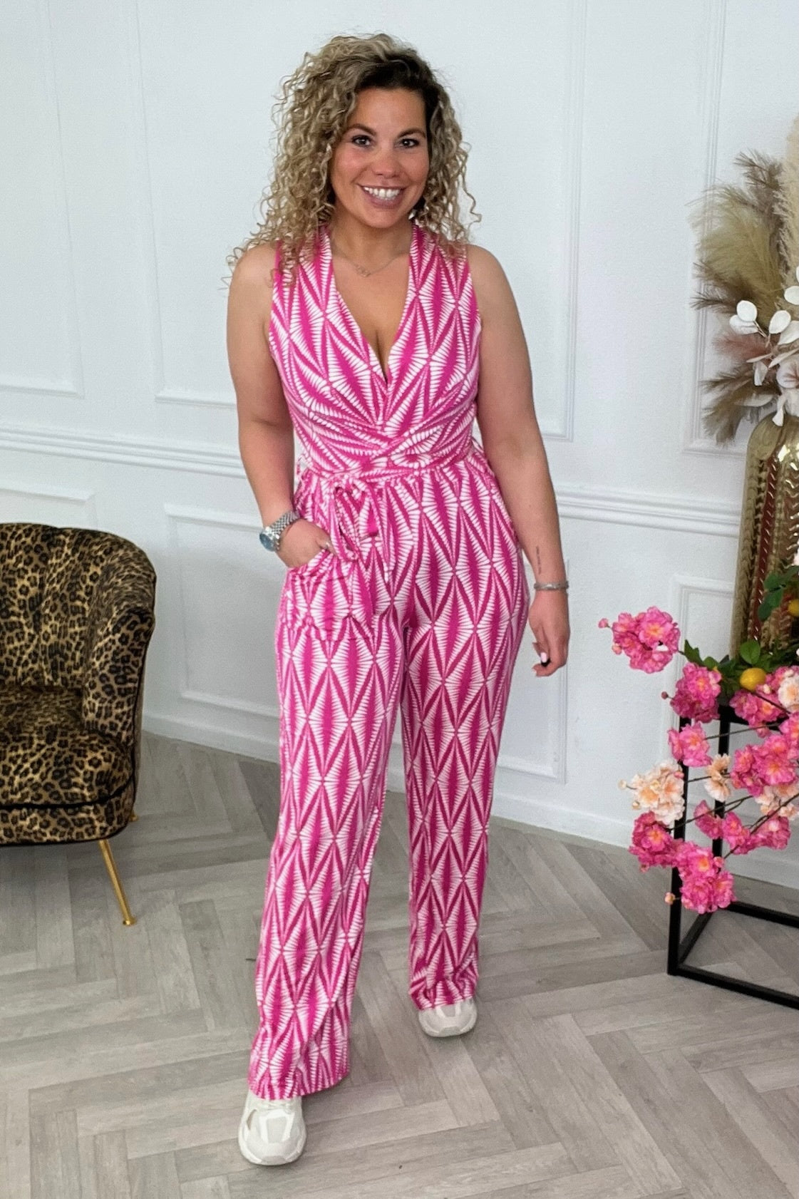 Perfect Diamond Jumpsuit - Fuchsia/White