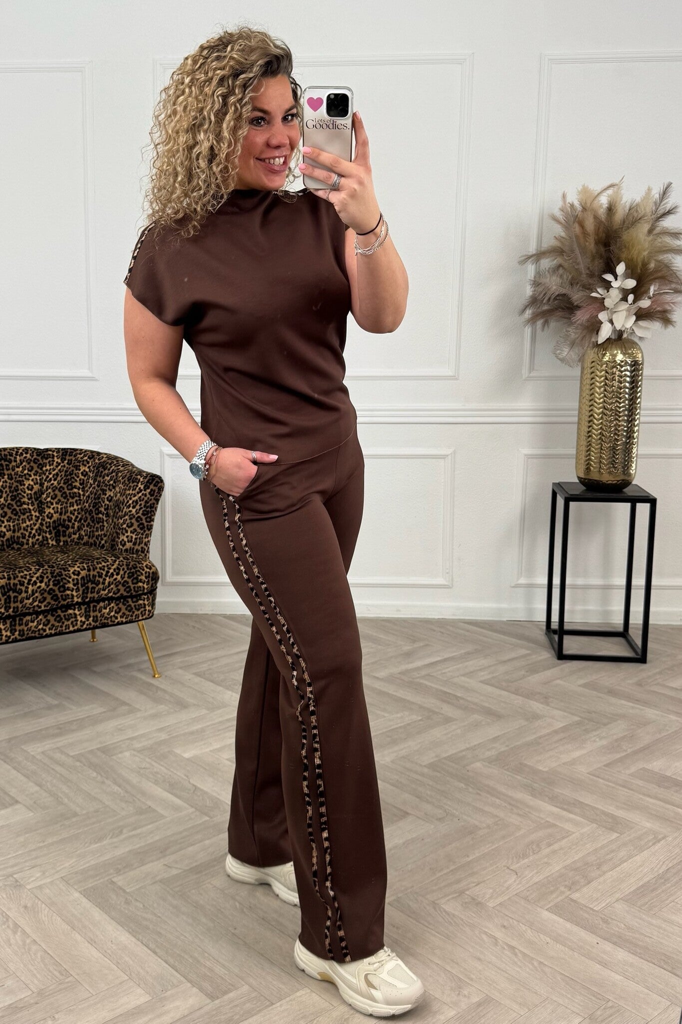 Deze set met top en broek, stijlvol met strepen is het helemaal! Shop jouw maat nu online in brown!