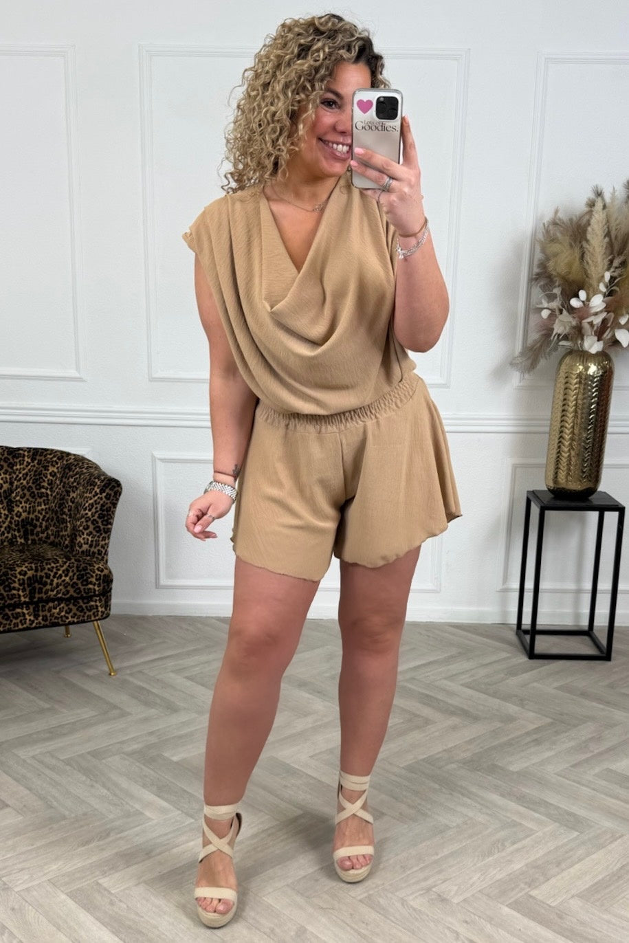 Combineer er op los met dit fijne shortje met elastieke band! Shop hem in camel!