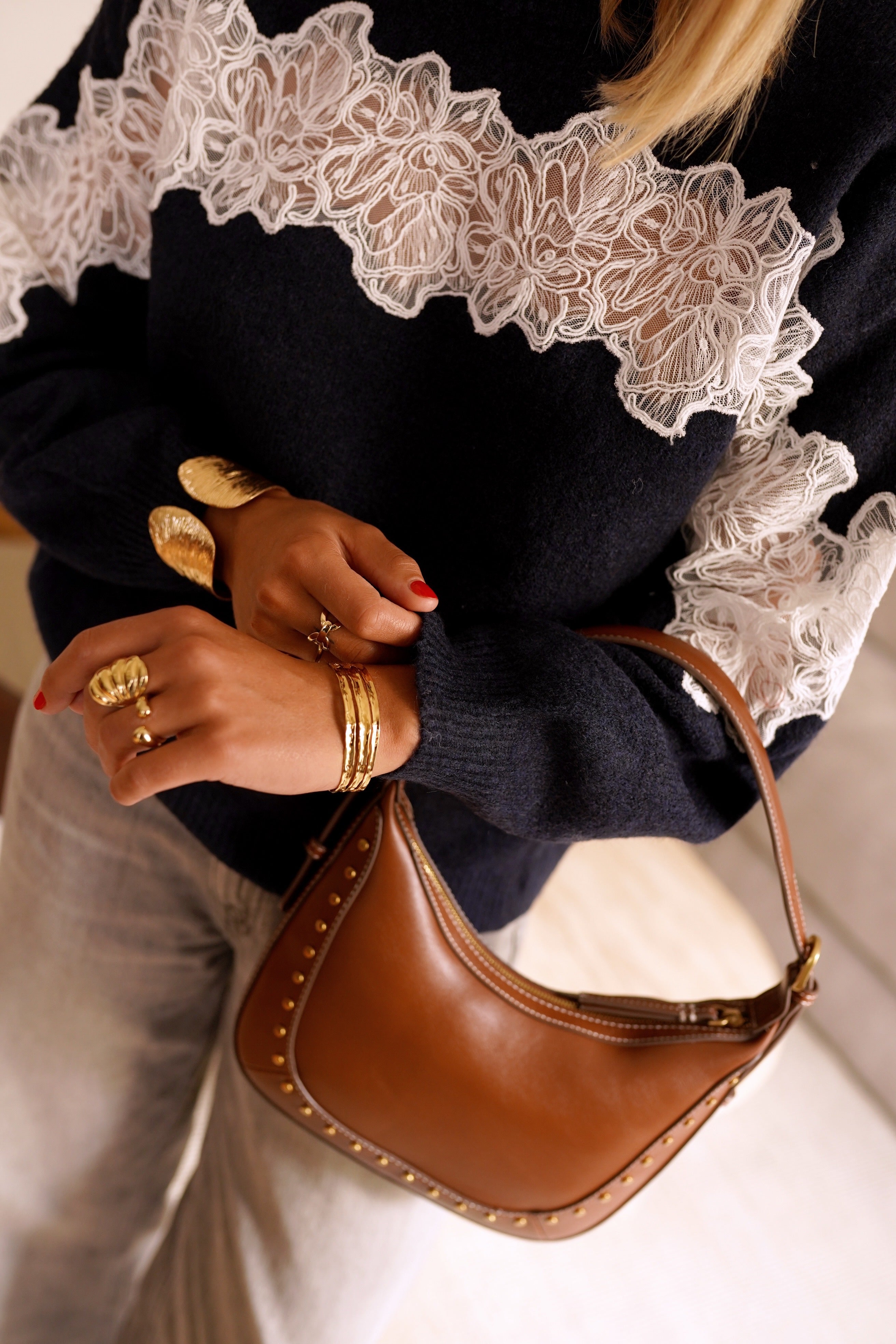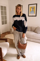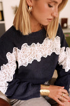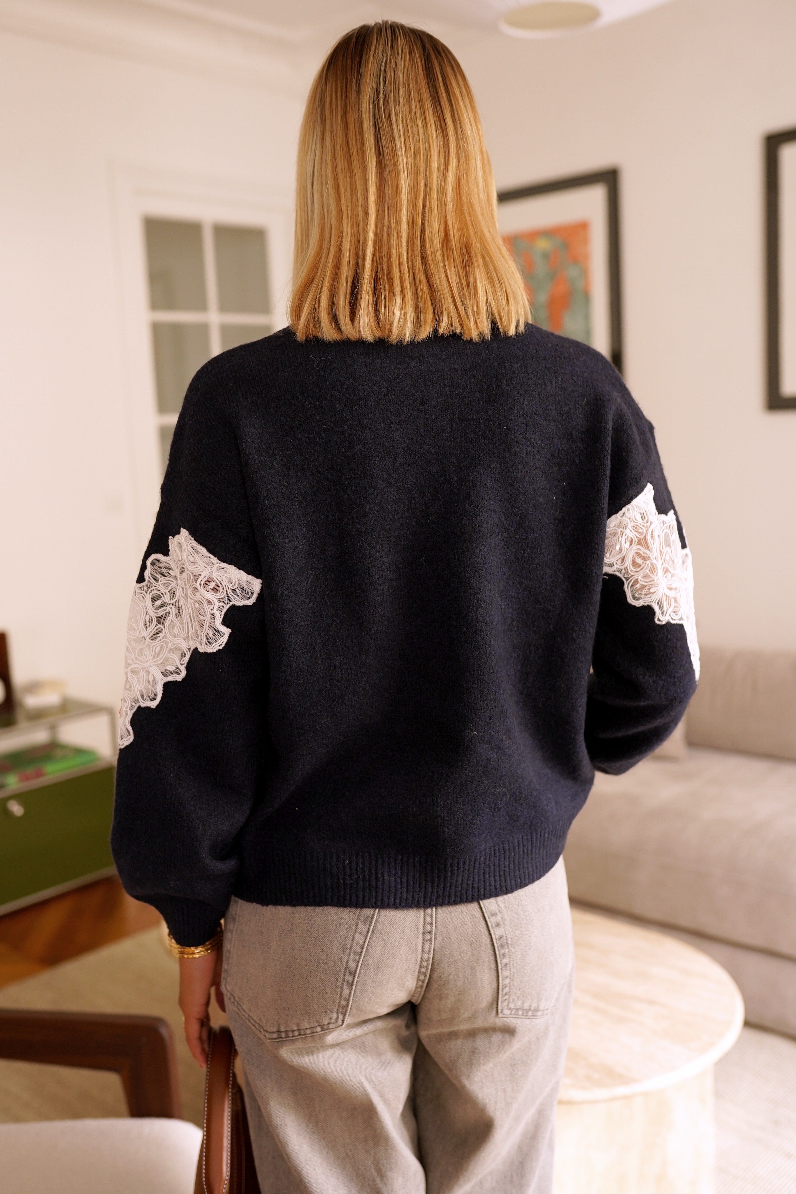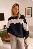 Deze prachtige lace sweater zit bijzonder comfy en ook nog eens super stylish. Combineer hem met een leuke jeans! Shop hem in Navy!