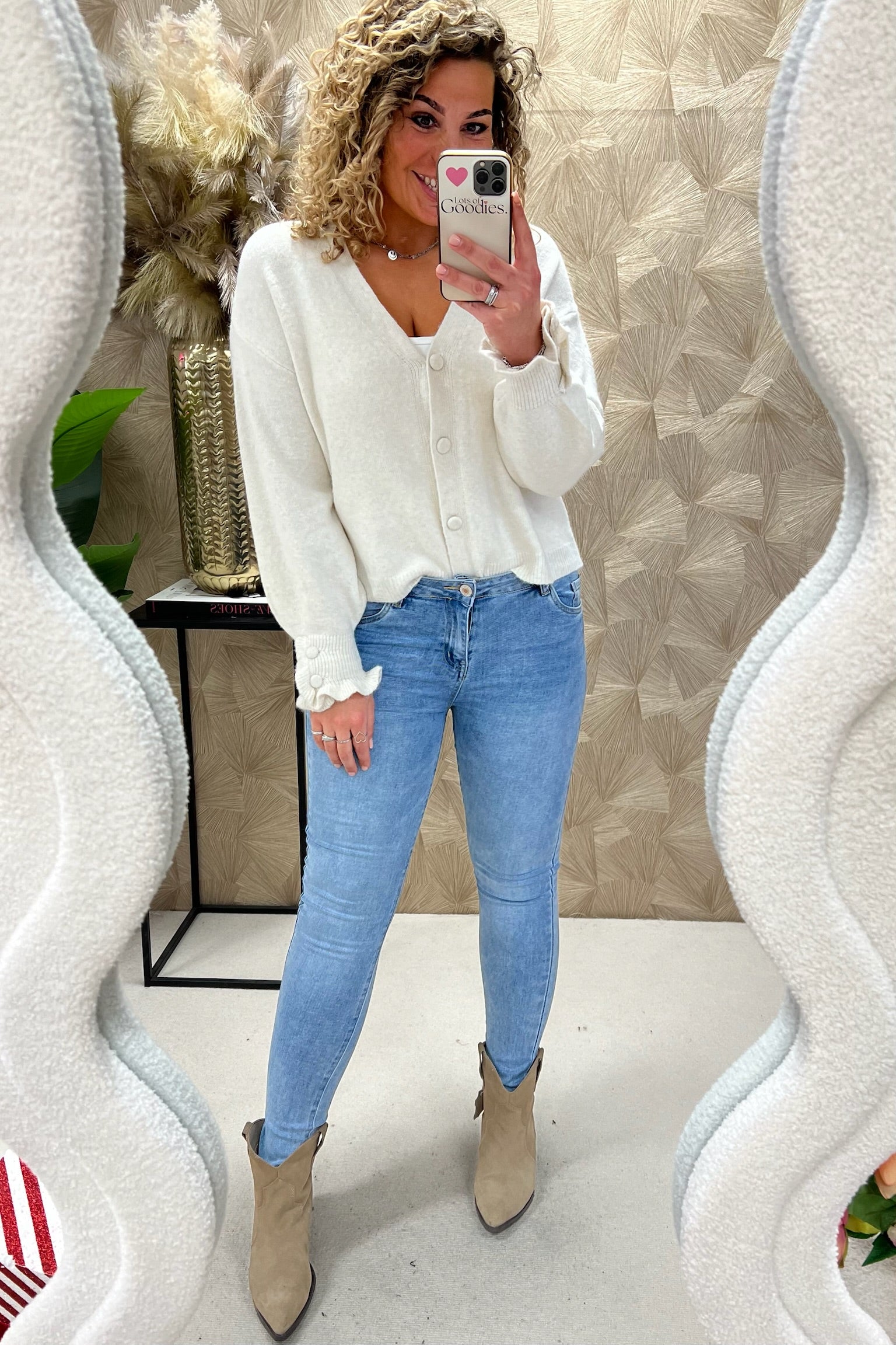Deze prachtige ruffle vest zit bijzonder comfy en ook nog eens super stylish. Combineer hem met een leuke jeans! Shop hem in beige!