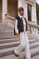 Wow! Deze classy gilet met flower details shop je nu nieuw online! Shop hem in black met witte details!