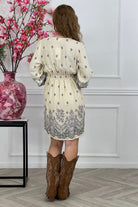 Long Sleeve Barok Print Dress - Creme