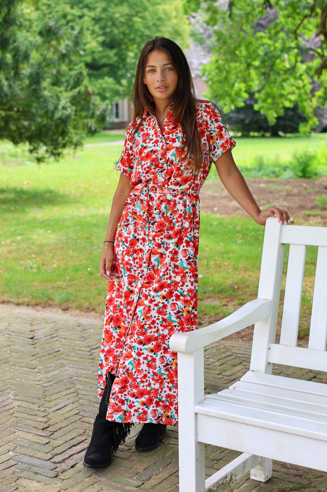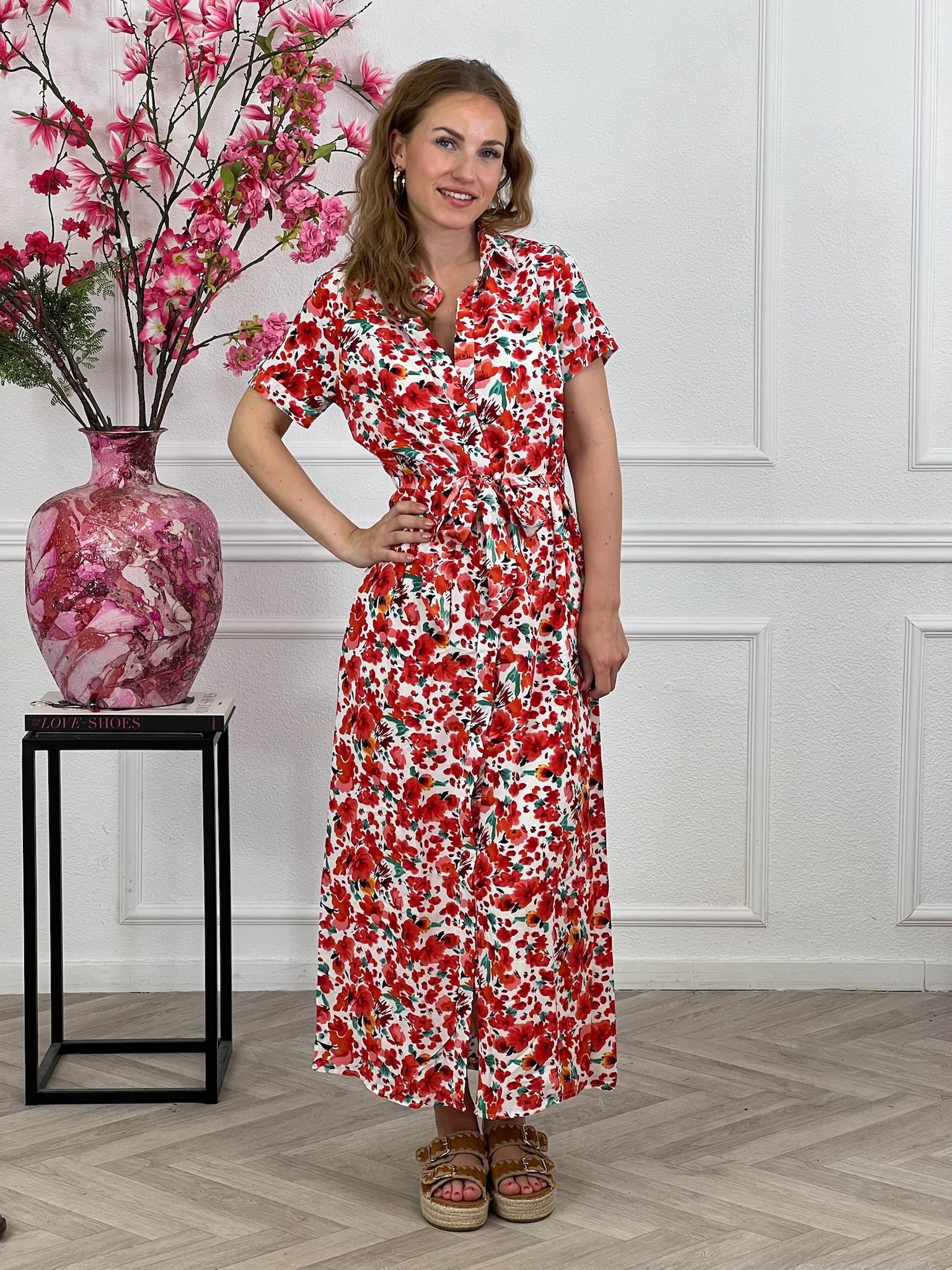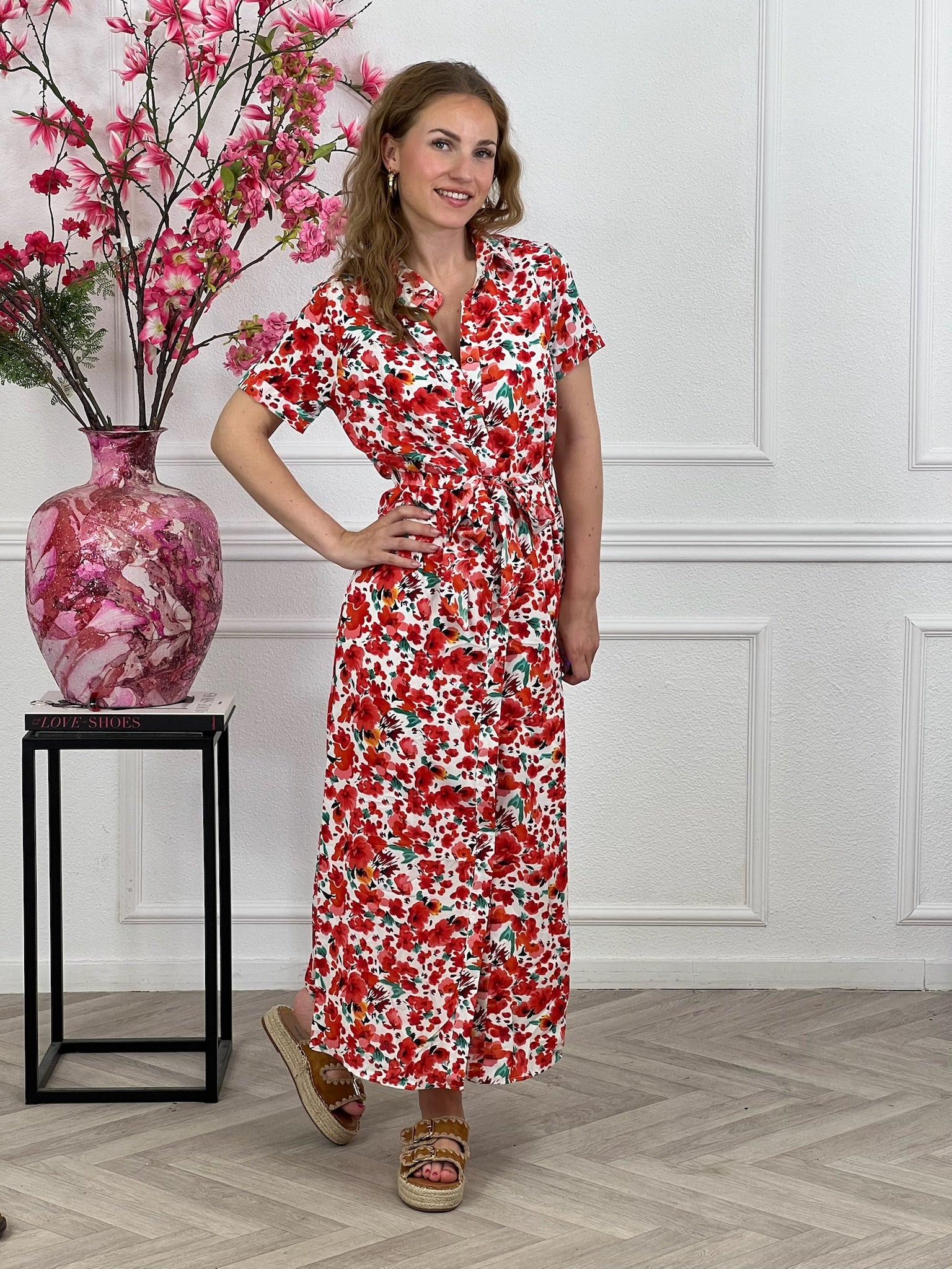 Deze mooie maxi jurk met een strikje en bloemenprint shop je nu nieuw online! Shop hem nu in white/red.