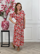 Maxi Flower Wrap Dress - White/Red