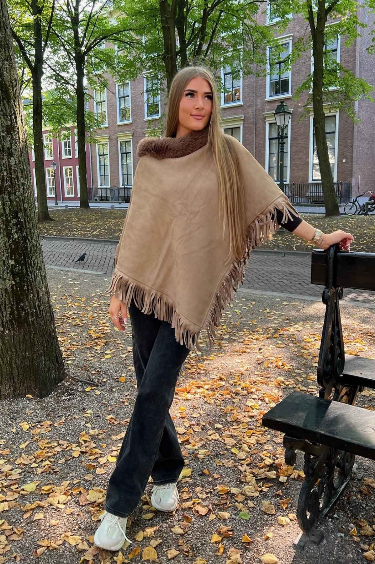 Even geen zin in een jas of vest? Dan is deze poncho de perfecte uitkomst! Gestyled met een prachtige fake fur en helemaal on trend! Shop hem in brown!