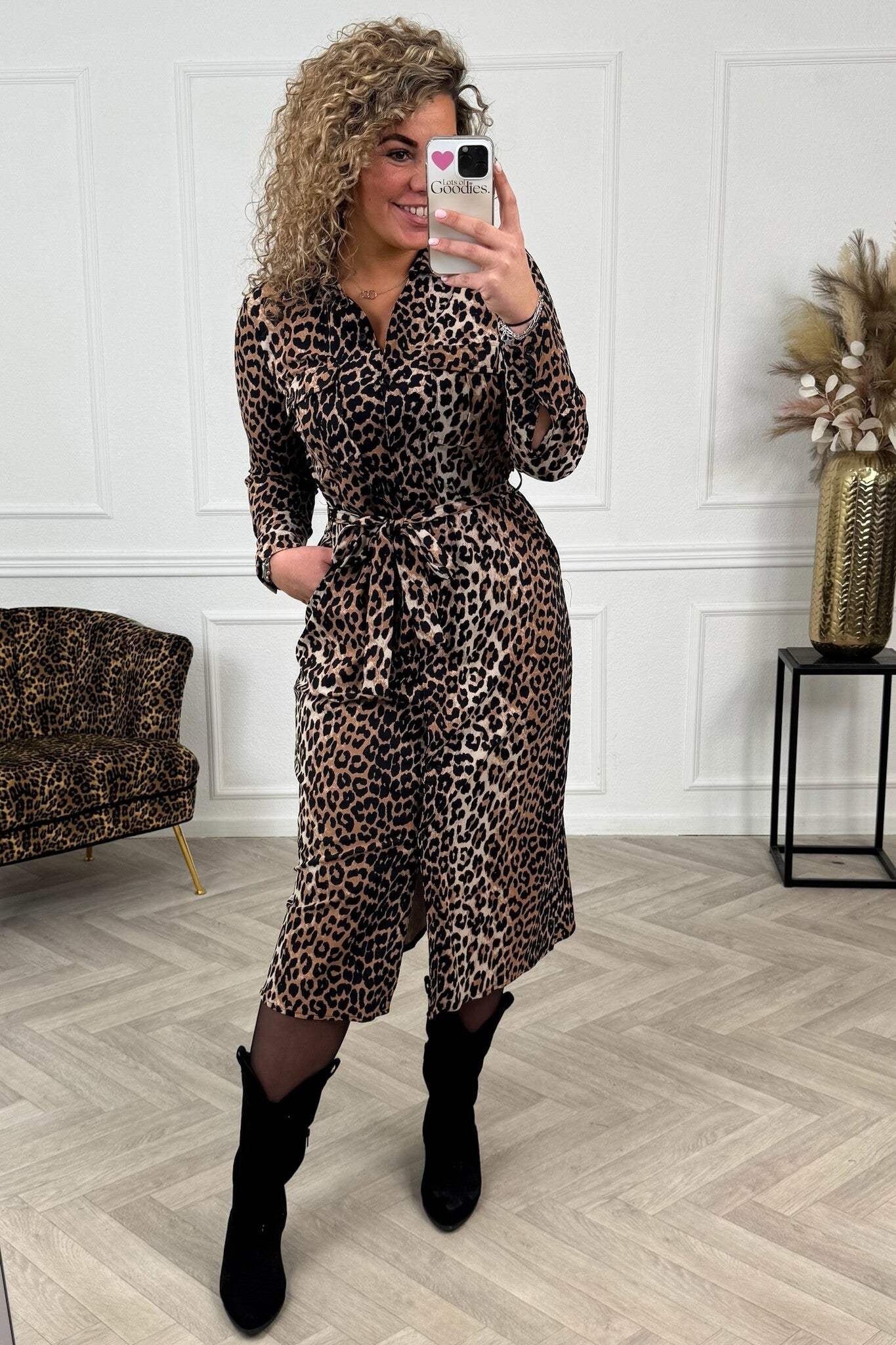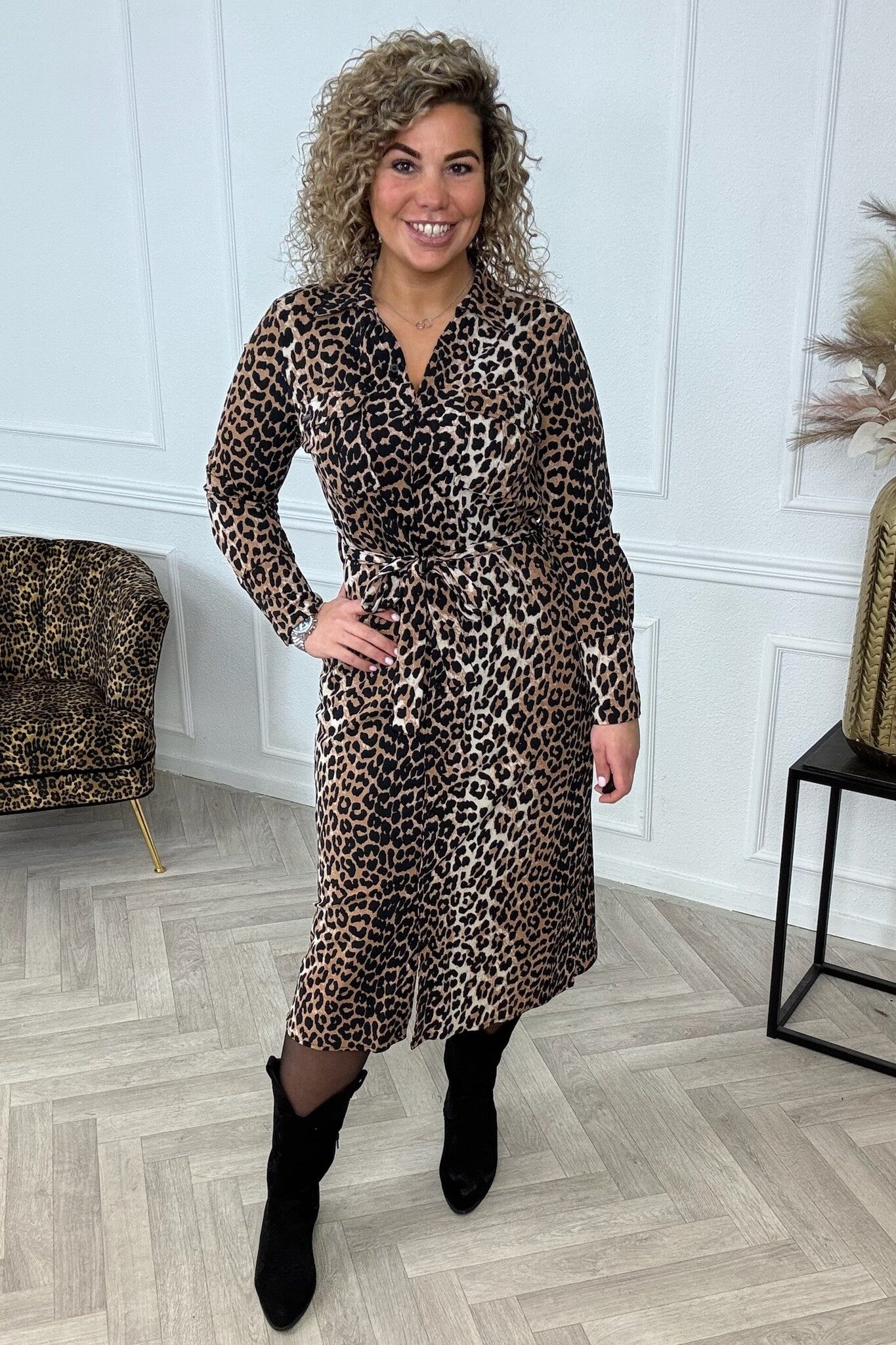 Deze jurk is het helemaal! Deze heerlijke jurk gemaakt van travelstof! Shop hem in leopard!