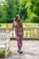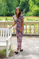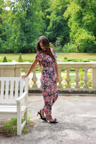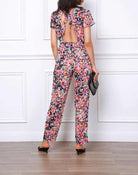 V Neck Flower Jumpsuit - Black